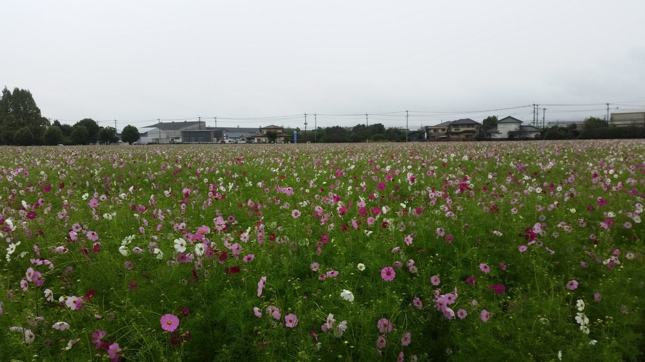 日帰りバスツアーで訪問しました。毎年行っていますが、今年は1週間早すぎたようです。3分咲きでした。1日雨で、足元はぐちゃぐちゃ。イベントも一部中止。残念。テントでは野菜や花、果物等を売っていました。屋台ではビールに合う食べ物も売っています。晴れていたら青空とコスモスの色が美しく絵になると思いますが。