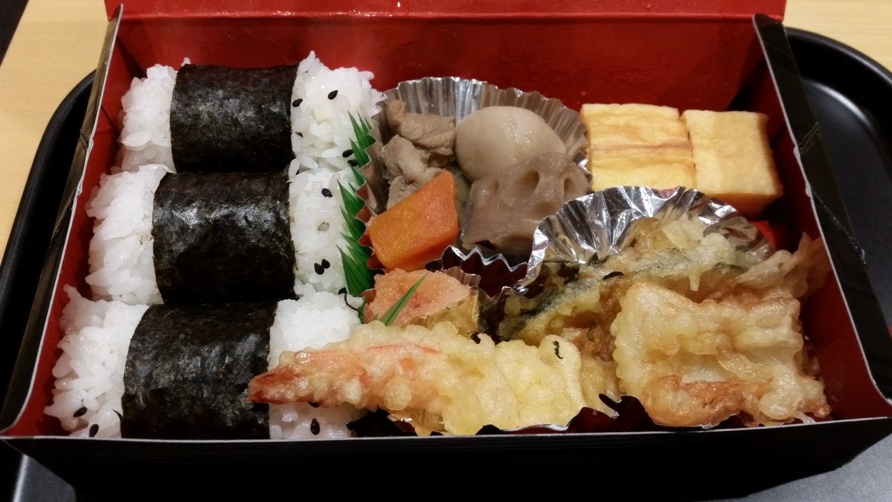 お昼時に飛行機が着いたので、お弁当を頂きました。30分ほど待ち、出来立てを540円で頂きました。今回はエビ天弁当で美味しかったです。女性には適量です。また、訪問の度にスタンプを1個ずつ押してもらい、12個貯めました。その景品がいくつかから選べ、お茶をチョイス。今回で台紙一杯になって、次回からないのが残念です。