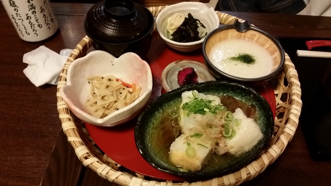 西小倉駅から徒歩5分のリバーウォークで、友達と原安二郎コレクションの「広重ビビッド」を見た帰りに、ランチに寄りました。私は花籠御膳、友達は揚げ出し豆腐セットをオーダー。私のにはしそごはん、明太とろろ、マグロ天ぷら、豆腐、レンコンの小鉢などが付いていて1300円ほど。友達のは、1000円ほどでした。味は普通。