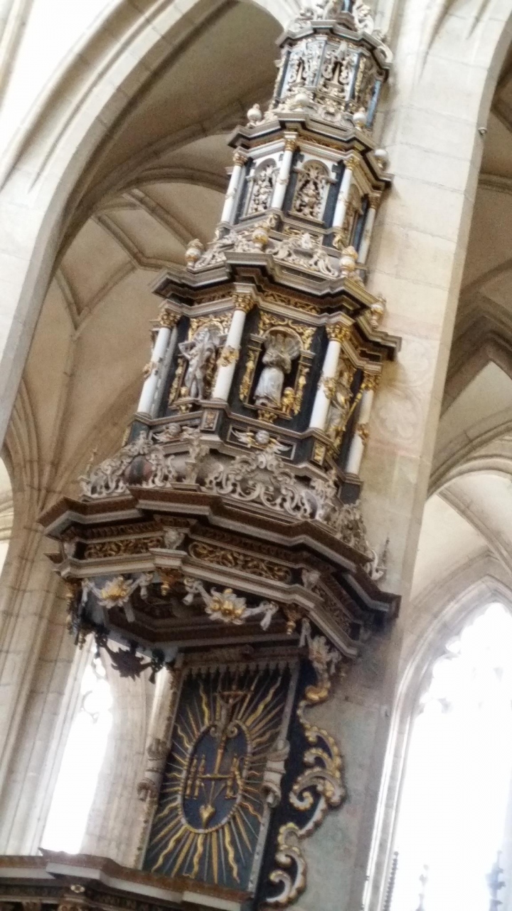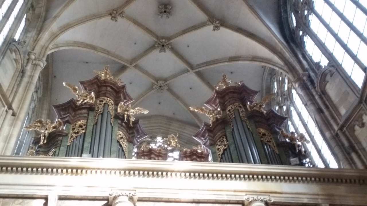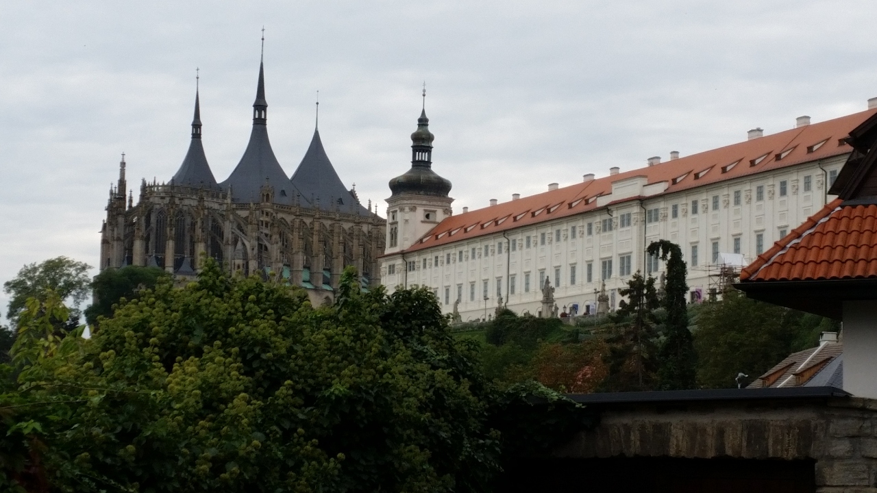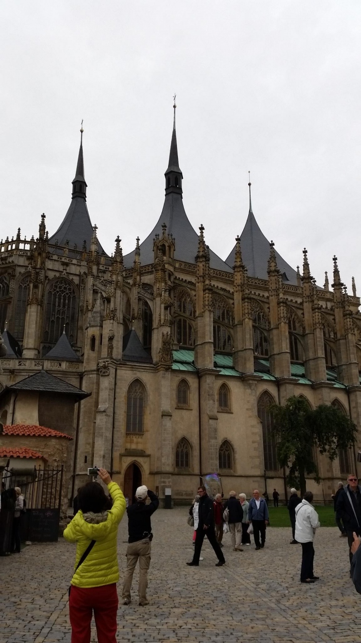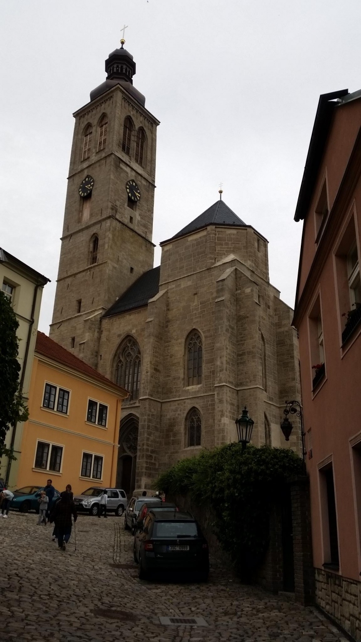 ツアーで訪問しました。後期ゴシック様式の教会です。外側にロケットのようなものが付いています。聖バルバラは鉱員の守護聖人で、建設資金のほとんどが、カトリック教会ではなく、市民たち自身によって調達されたそうです。1338年に建設開始、資金不足により中断し、1558年に一応完成しました。その後も改築されバロック様式の様式も加わりました。内部にパイプオルガン、貨幣鋳造職人のフレスコ画もあります。