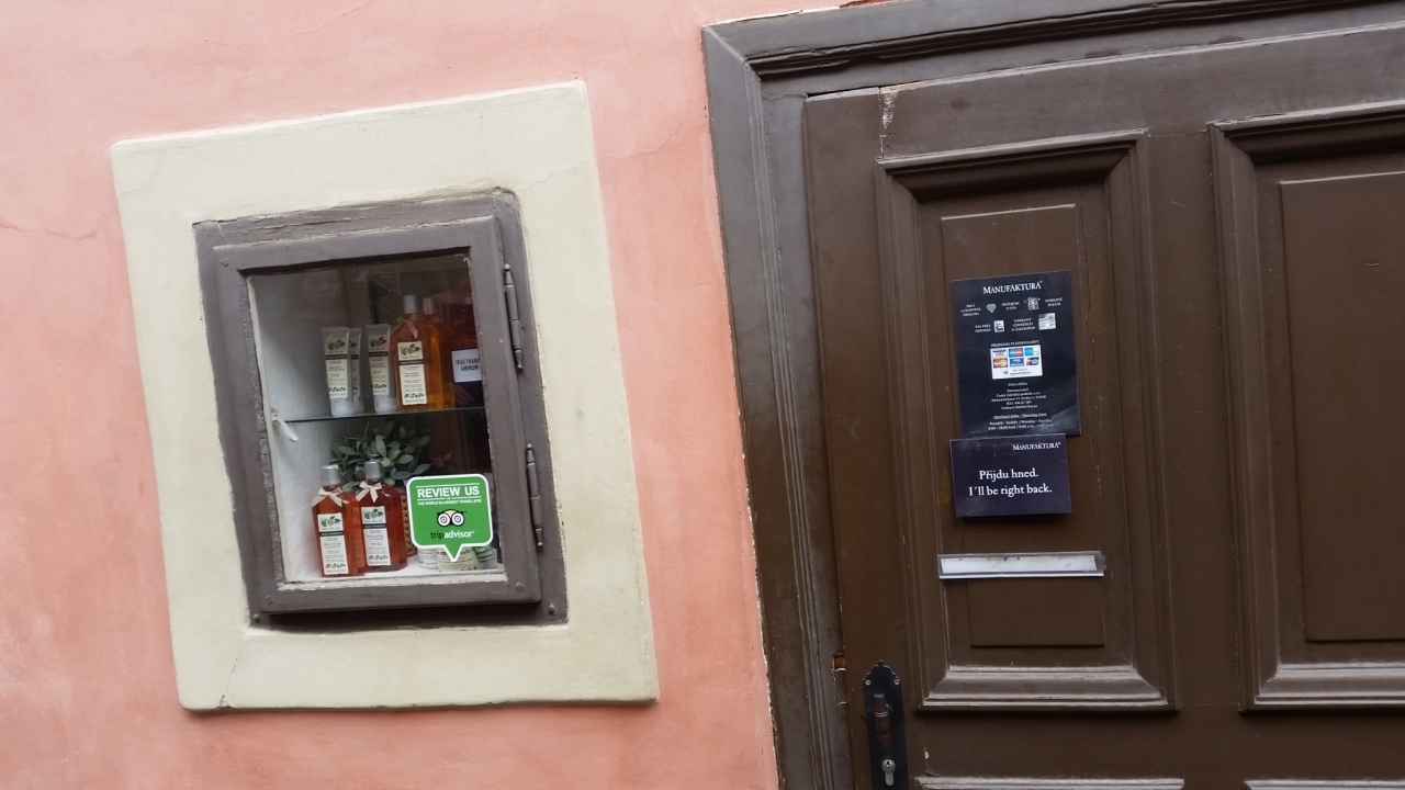 口コミを読み一度訪問したいと思っていました。プラハ空港で見つけ、黄金の小路で見つけ、プラハのカレル橋から旧市街に入る所でも2軒、あちこちにある自然派化粧品のお店です。リップバームも興味がありテストしましたが、結局買ったのはラベンダー入浴剤