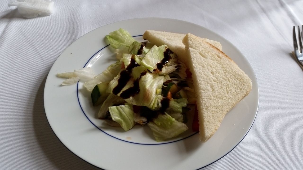 ツアーのランチで訪問しました。メニューは野菜サラダ、白身魚のムニエルとマッシュポテト。美味しかったです。紅茶は2ユーロ(267円)リーフティーで、ポットで出てきましたが、味は今一でした。デザートはクレープ。美味しかったです。サーブが遅かったので、最後は大変慌ただしかったです。