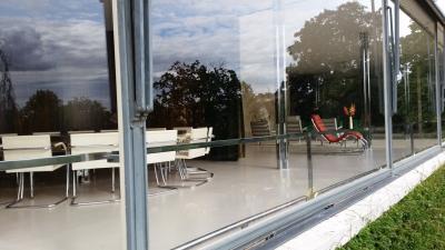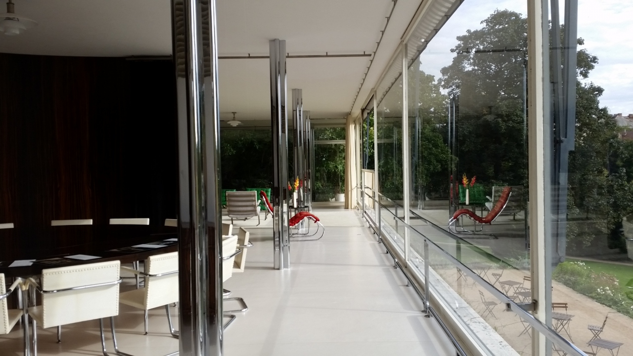 ツアーで訪問しました。トゥーゲントハット氏がローエ氏に依頼して1929年に建てた家です。自動開閉の大きな窓ガラスからは日がさんさんと入り、家具はスタイリッシュで、現代の物と言われても違和感がありません。必要最低限の物しか部屋にはありません。柱は四葉のクロバー型。お金をかけて造ったのであろうと想像できました。