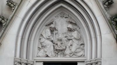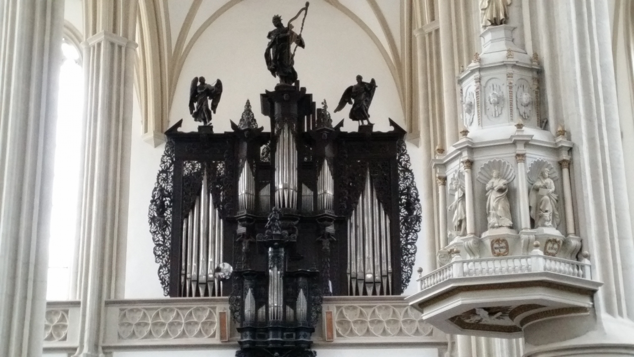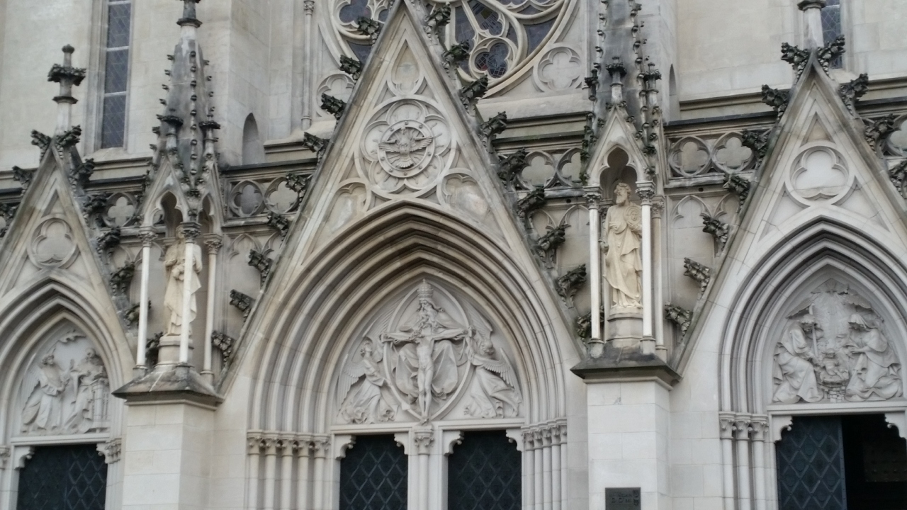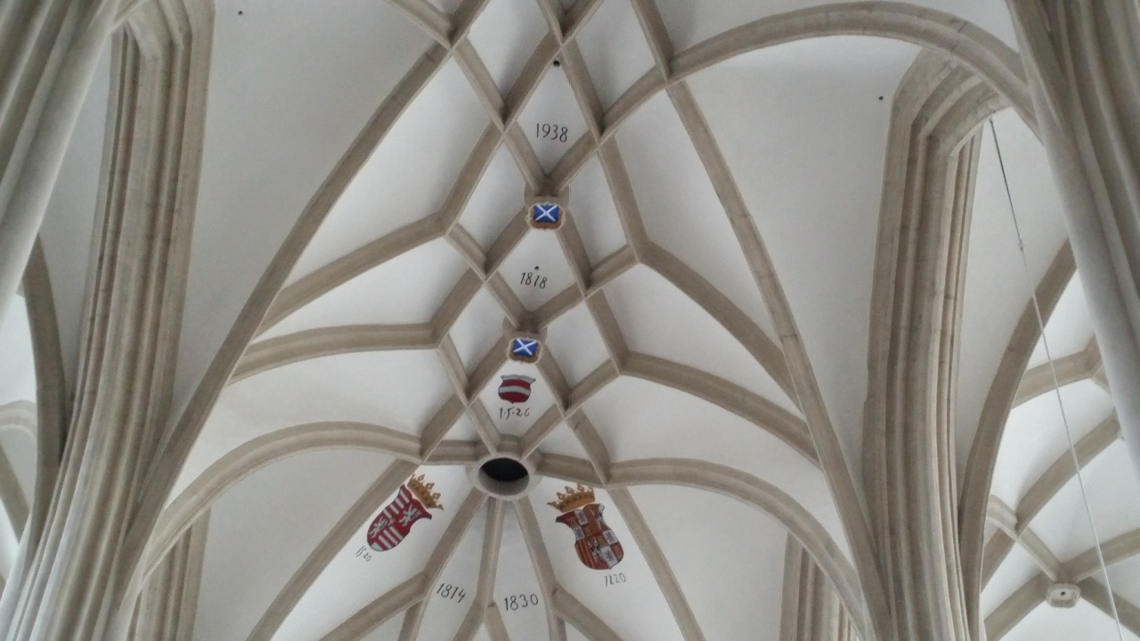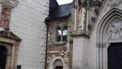 ツアーで訪問しました。塔の高さは100mと高く、目を惹きます。1131年に最初にロマネスク様式の教会として建てられ、幾度も改築が繰り返され、1883年から1890年にかけて尖塔が付け加えられ現在のようなネオゴシック様式の姿になりました。マリアテレサも訪問したそうです。装飾も美しいです。