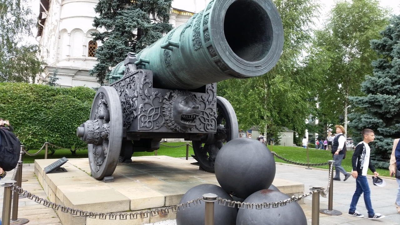 ツアーで訪問しました。1586年にアンドレイ・チョホフによって鋳造されたブロンズ製の大砲で口径890mm重量は40トンです。当時としては世界最大の口径だったそうです。今まで一度も発砲されたことはありません。大砲の前に置かれた弾丸は飾りでひとつ1トンもの重さです。なぜこんなに大きな、でも、役に立たない物を作ったのか、しかも未だに遺してあるのか不思議です。権力を誇示したかったのかしら?