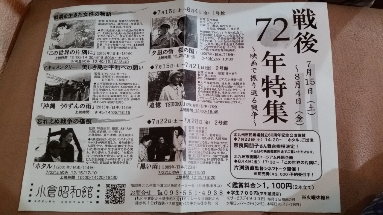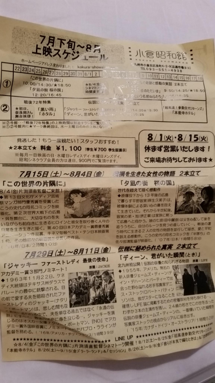 旦過市場の近くにある映画館です。少し以前の2本立ての映画が通常1100円、水曜日なら女性は200円引きの900円で見られます。昭和の香りがする映画館で、女性館長の観点で、上映映画を選んでいるようです。中は飲食可能で、お弁当をもちこんで食べている方もいます。シネコンよりもお客の数が多いようです。