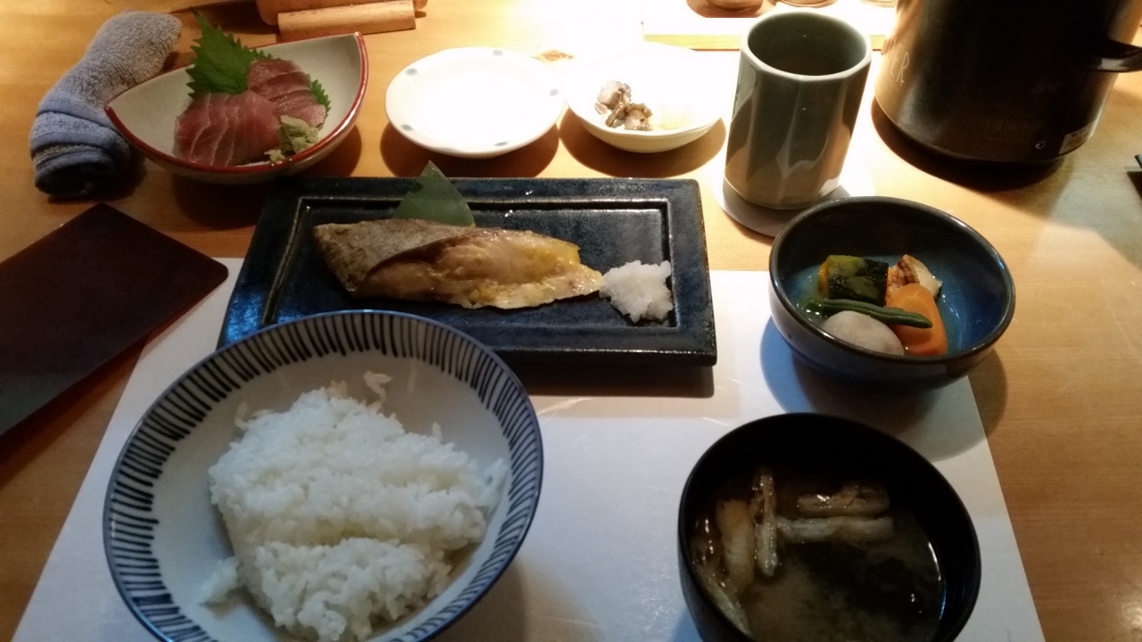 「山の日」の3連休の初日、しかもお盆に、津田沼パルコへお買い物に行きました。13時少し前に、混雑を覚悟しながらも、ちょっと早めにと、ここの6階レストラン街を一周し、日本海庄やへ。メニューを見て、「焼き魚定食」950円をチョイス。席はカウンター水槽前。なぜか1匹がずーっとこちらを見続けていて、見られながらの食事。しかも食べているのは御同類の魚だし・・・ご飯、みそ汁はお代わりできます。白身魚の西京焼き、まぐろの刺身3切れ、煮物、漬物。西京焼きは普通でしたが、まぐろが、何故かびしょびしょでした。うーん???次回はマグロ以外で、別席にします。居酒屋なので、店員は威勢よく声を出していました。