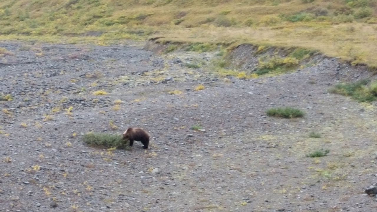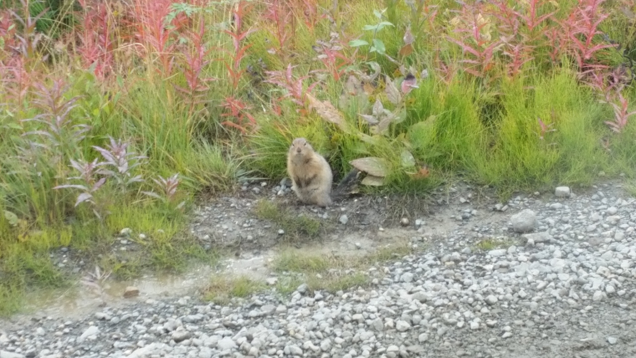 ツアーで8時間混乗バスに乗りました。英語での説明でしたので、さっぱり分かりませんでしたが、野生動物が出現すると、バスを止め、助手がカメラで撮り、バス車内のモニターテレビで見せてくれます。そうするとお客は、現物を「どこどこ?」と探して、双眼鏡で見たり、写真を撮ったりします。あちこちで、グリズリーやムース、リスやウサギなどが見られ、かわいく、自然を感じることができました。