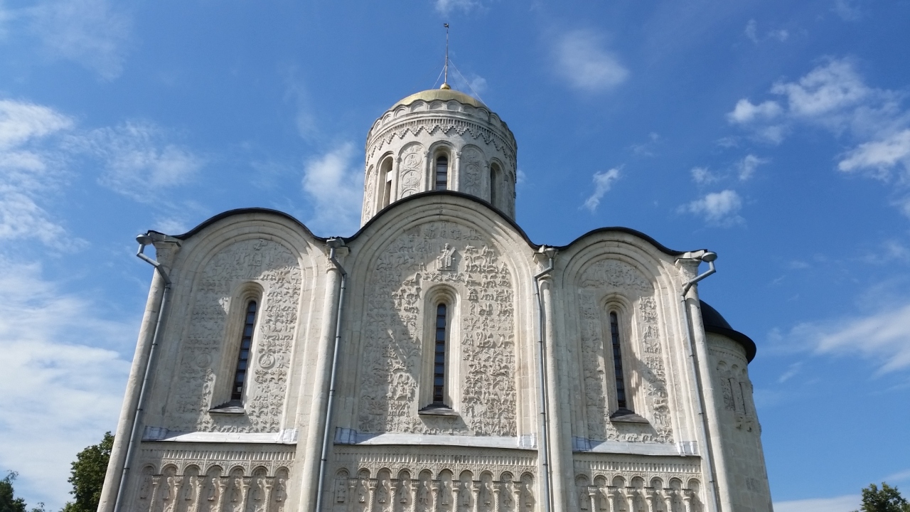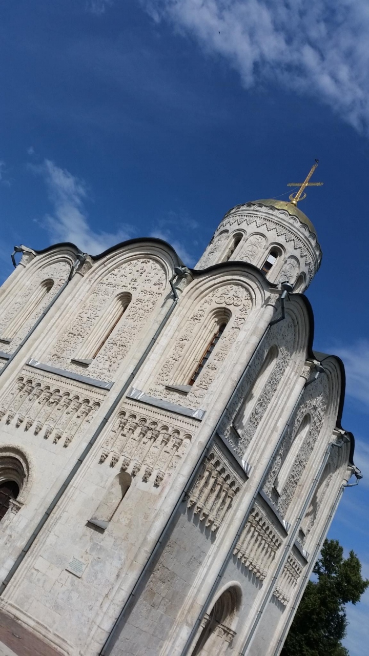 ツアーで訪問しました。1158年に建設が開始され14世紀まではロシアの大聖堂の最高位にあった教会です。5つの金色玉ねぎをかぶり、建材は石灰岩で、白。その後のロシアの教会建築の原型となったそうです。職人は神聖ローマ帝国からも派遣されたそうです。