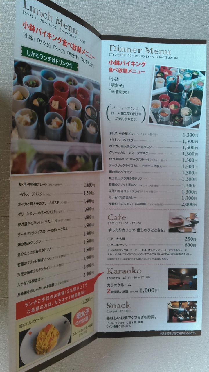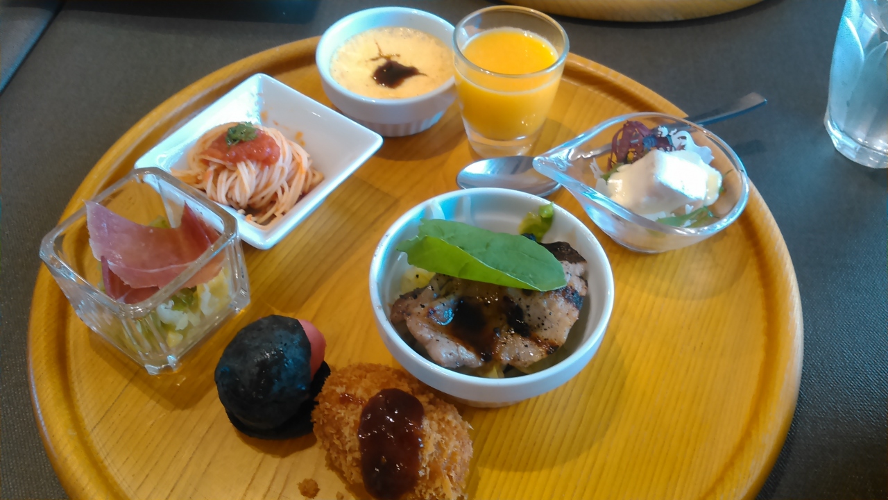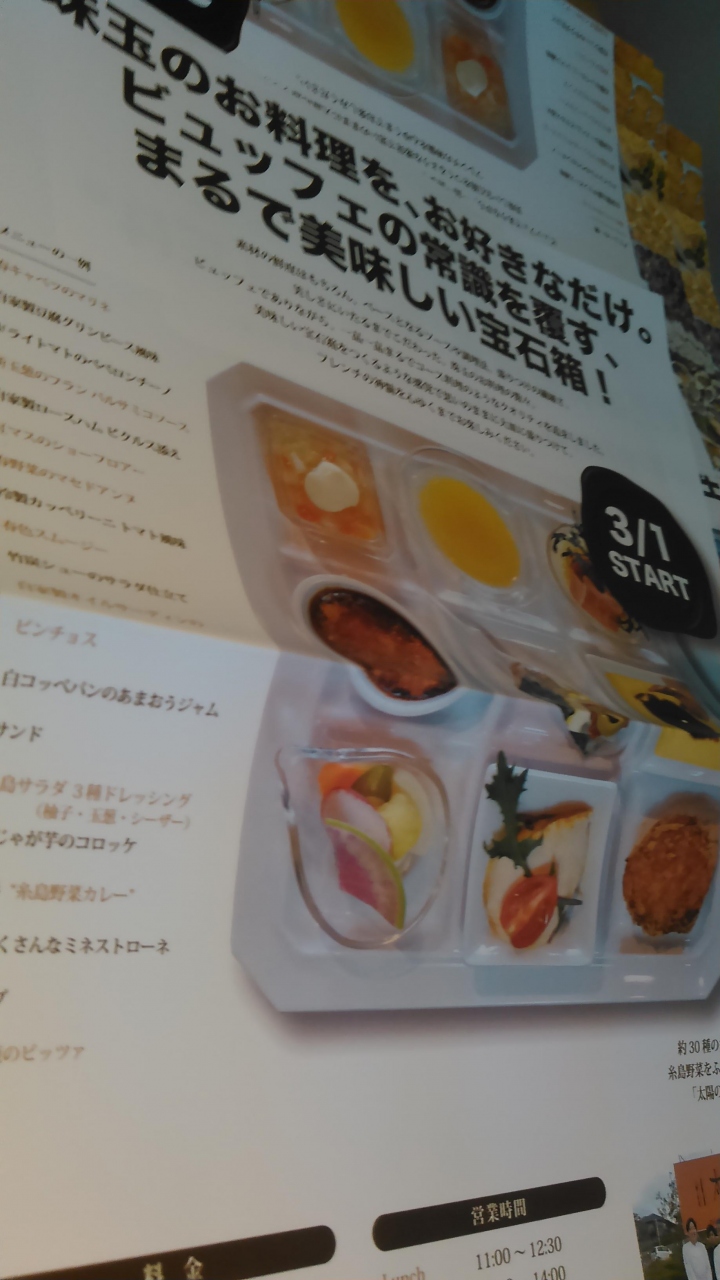 日帰りバスツアーで訪問しました。糸島産の野菜類を使った大皿料理+デザートと飲み物のブッフェのランチを頂きました。大皿料理は、女性向きの分量で味は普通。中身は一口ジュース、茶碗蒸し、豚焼き、竹炭パンポテトサラダサンド、コロッケ、スパゲティ、海藻サラダ。ケーキも数種類、飲み物は温かい物と冷たい物数種類ずつでした。
