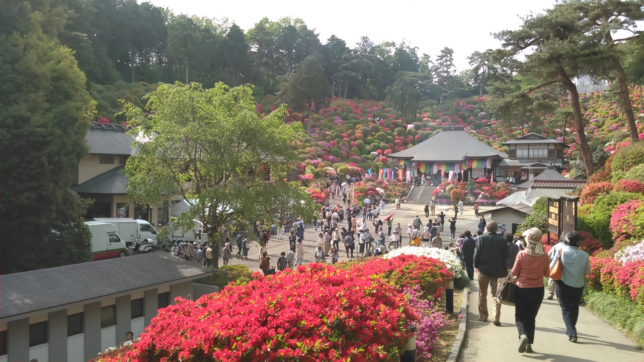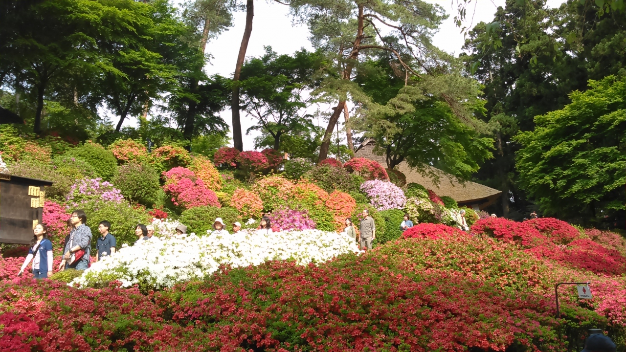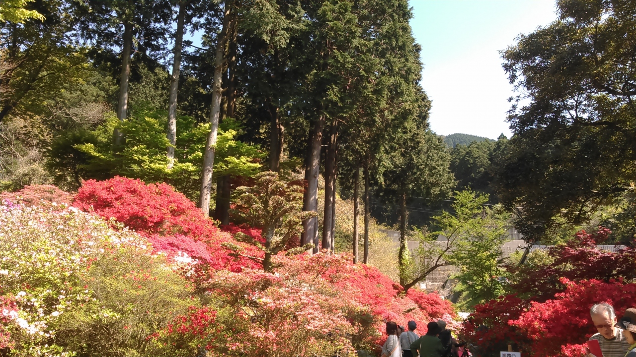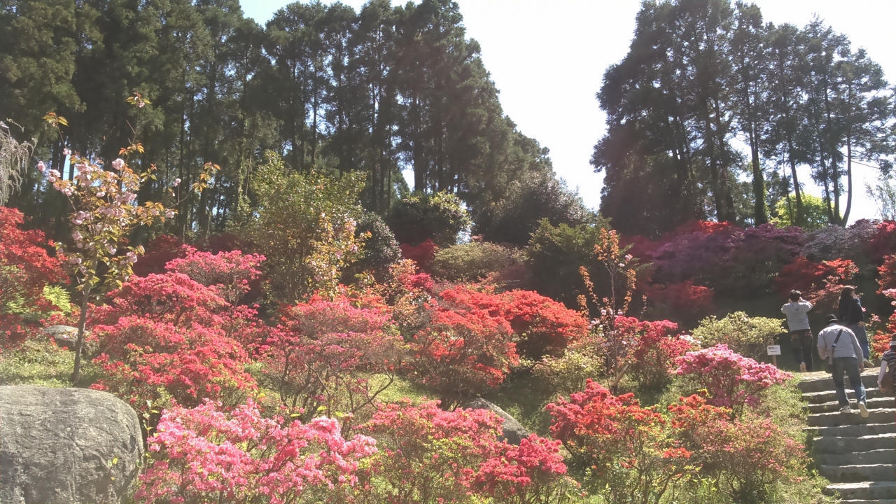 日帰りバスツアーで訪問しました。個人のお宅というより、個人のお山一つが、つつじ園となっています。パンフレットは、小学生の僕ちゃんが配ってくれました。つつじは、一つ一つの花が小さい種類です。色は朱色、ピンク、白。黄色い物もありました。山の緑と、青い空との対比が美しかったです。御船山公園、箱根山の上ホテルのつつじも美しいですが、ここのが一番空いていて、自然な感じがします。