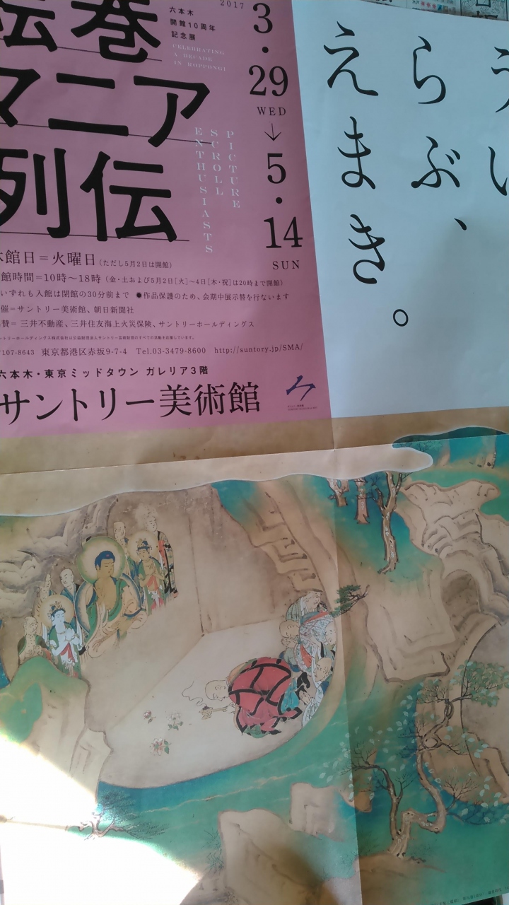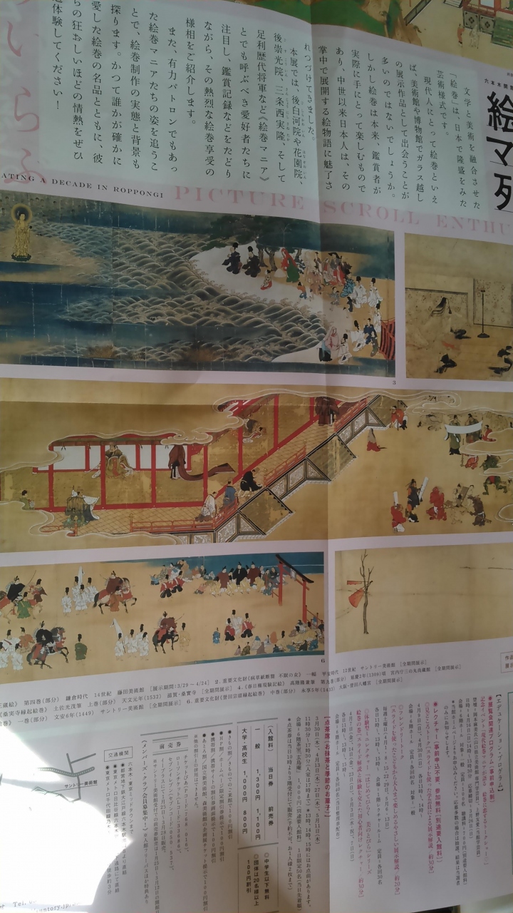 新聞屋さんのチケットが当たったので、お友達を誘って、この美術館に来ました。何度も来ていますが、乃木坂を下車して、改札口で必ず駅員さんに、場所を聞かないと、たどりつきません。ミッドタウンは11時にオープンするお店が多く、エスカレーターも動いてないので、別の風景に見えてしまいます。絵巻物は昔習ったような気がする程度の意識で鑑賞。予想外に、細かい絵、美しい彩色、来てよかったと思いました。