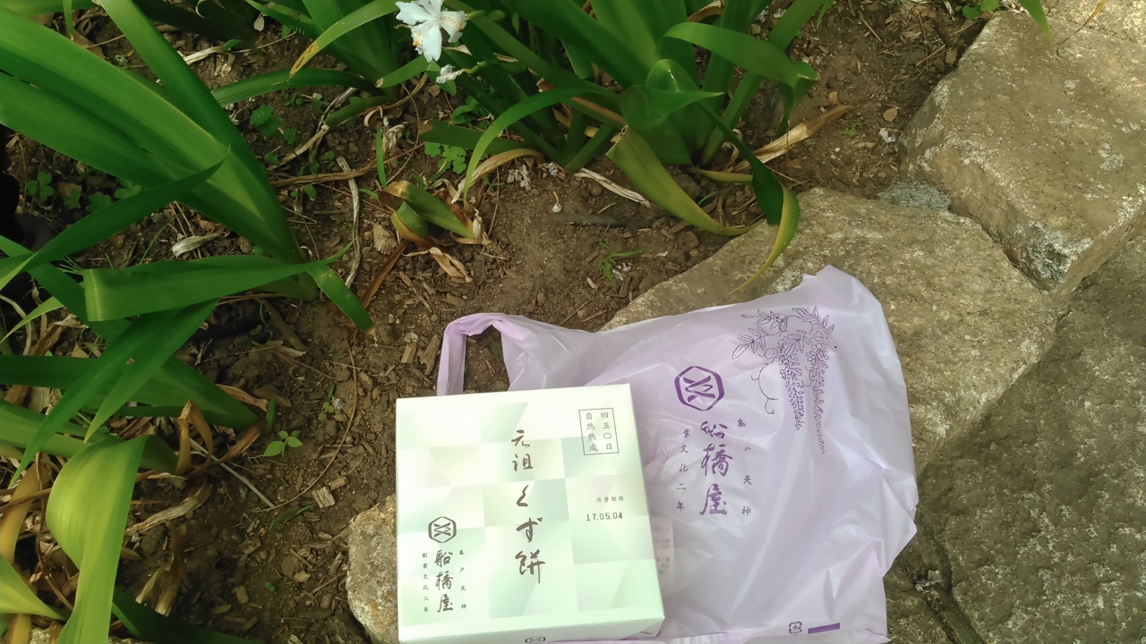 亀戸天神の藤祭りの帰りに寄りました。鳥居のそばに露天の売店も出ていますが、本店の方が美味しいような気がして行きました。開店前からお客が行列。店内で食べる方の列の方が長い行列、お土産の方があまり並んでなかったので、そちらに並びました。一番小さい箱が760円。次回は店内で食べたいです。