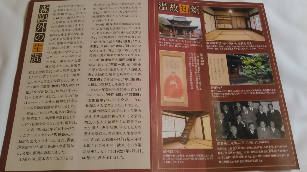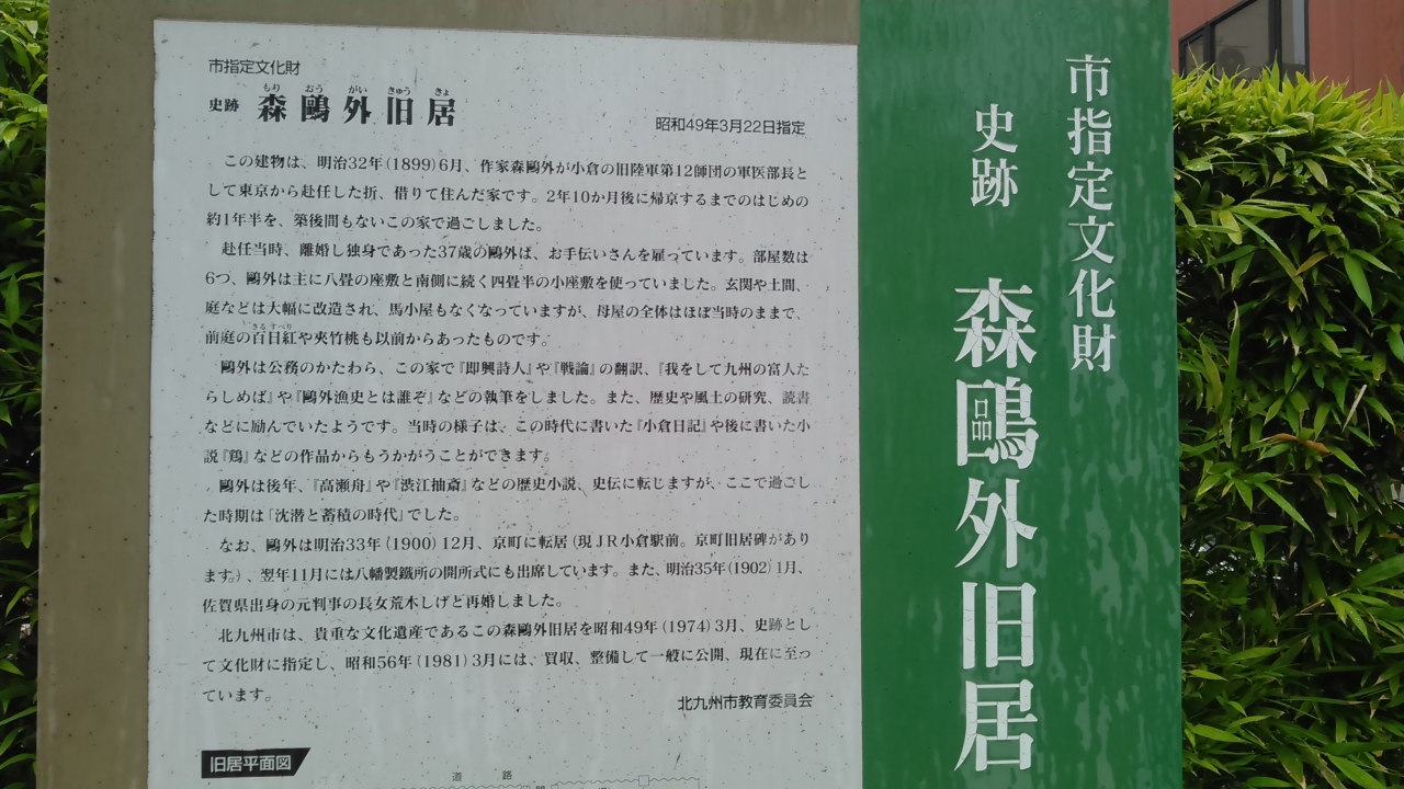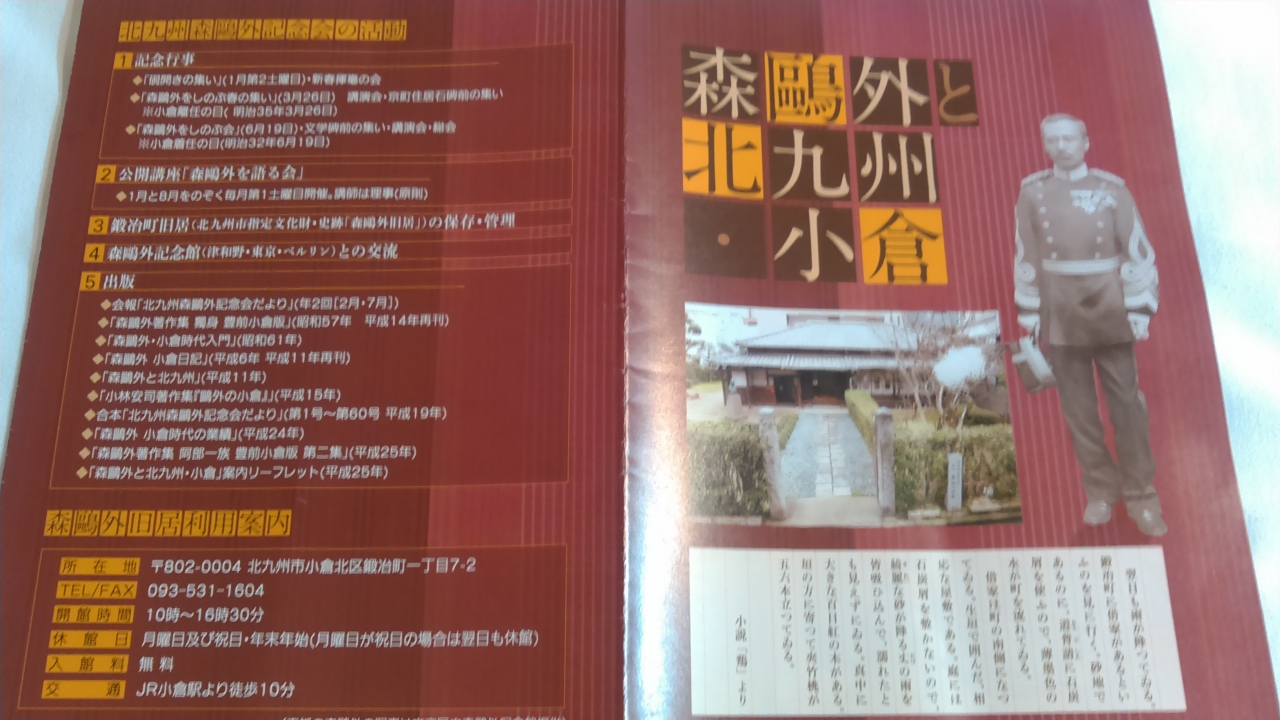 小倉駅から徒歩7分。飲み屋街の中にある、一戸建ての古いお宅です。森鴎外の胸像が立っています。なんといっても入場が無料というのが、このご時世嬉しいです。和室に書写作品が展示されており、お庭もよく手入れされていました。- 旅行時期