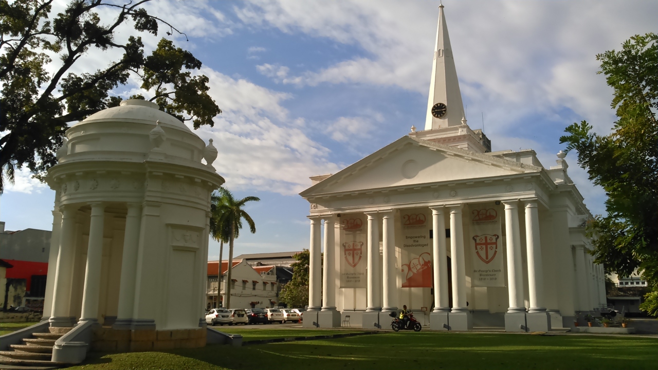 ツアーで訪問しました。東南アジアで最も古い由緒あるイギリス国教会です。広い芝生の庭に面しており、緑の芝に白亜の建物が映え、とても美しいです。シティーホールと並んでペナン島を代表する西洋建築物の一つとされています。旧正月を祝う赤いドレープカーテンが入口にかかっていました。