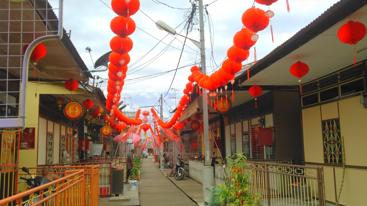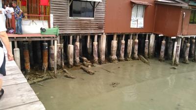 ツアーで訪問しました。中国移民の水上部落です。「李一族の橋」とか、「林一族の橋」など、同姓一族ごとに橋がいくつかあり、両側には小さなお店や家が並んでします。お寺もあります。水の上に柱があり、その上に家が建っています。