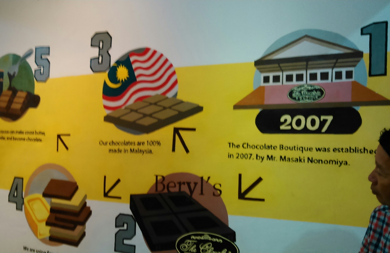 ツアーで訪問しました。初めにココアの木を見たり、チョコレート製造の仕方などの学習をしました。それから、試食。ドリアンチョコや胡椒チョコなど、何種類もありました。ホワイトコーヒーの試飲もありました。高いけれど美味しかったです。