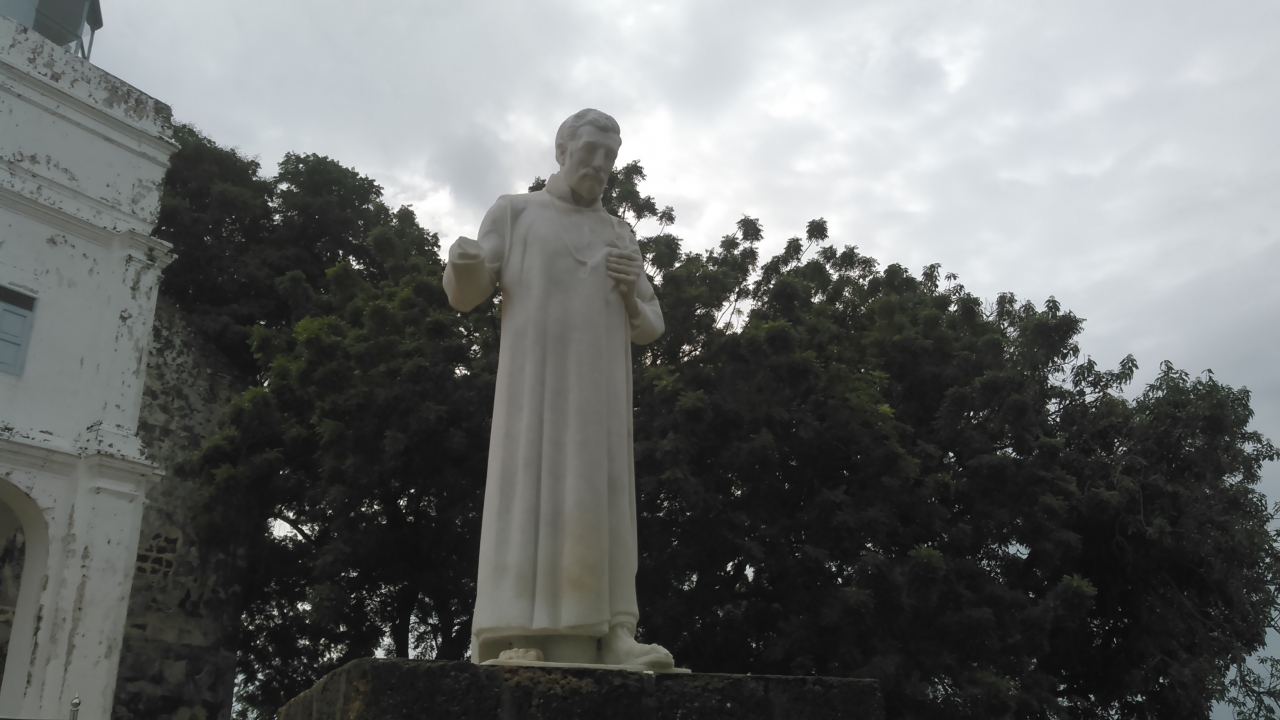 ツアーで訪問しました。オランダ広場から上って行った所にセントポール教会があり、その端に立っています。日本に布教に来て、亡くなった後には、ここに9か月遺骨が安置されたそうです。長崎の平戸にも同じ像が立っていると、ガイドさんが言っていました。