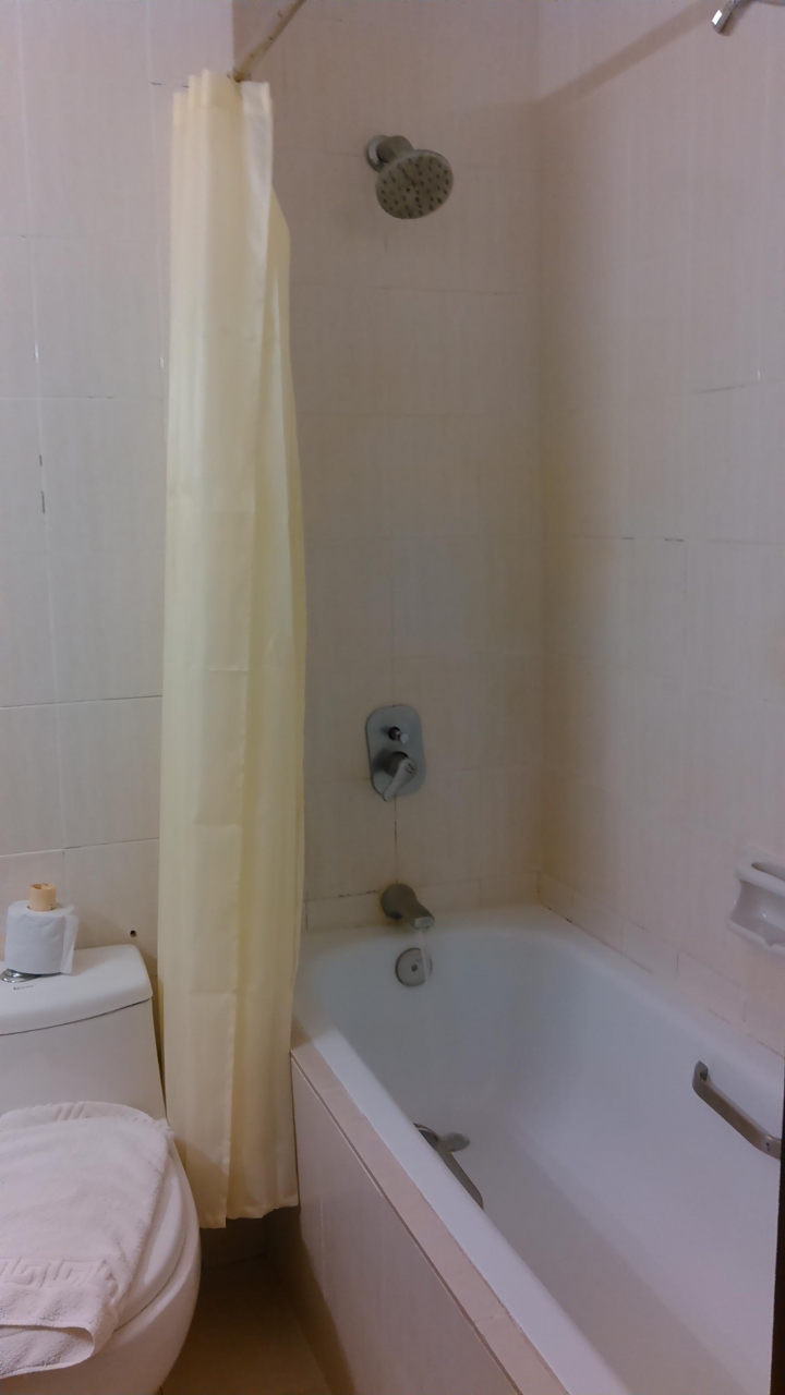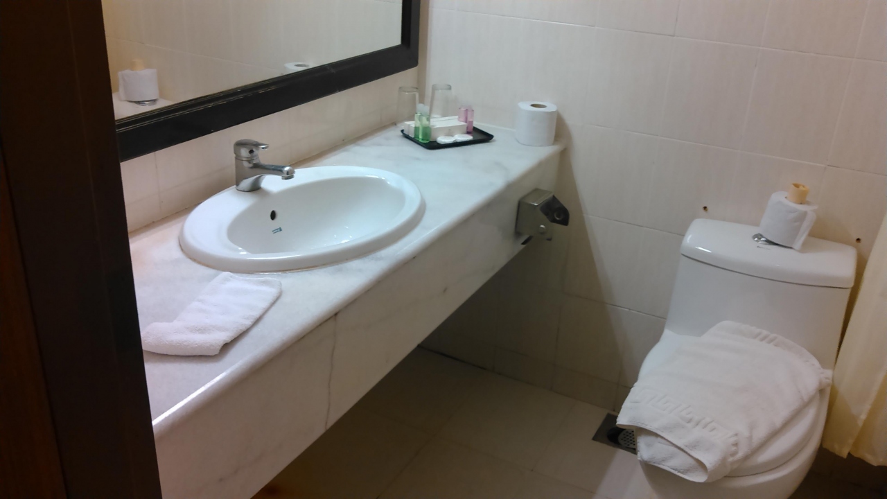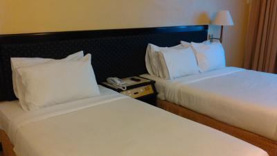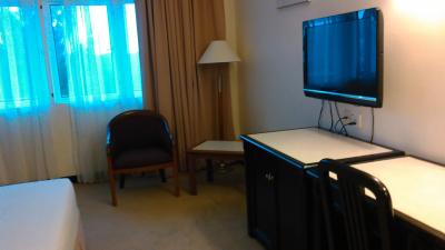 ツアーで1泊しました。キャメロンハイランドにあるホテルで、大変涼しく、エアコンはありません。部屋はダブル+シングル。水なども3人分ありました。タオルはへたり、鉤裂きがあり、机の引き出しは開きませんでした。シャワーは固定式で、バスタブはありましたが、栓をしても少しずつお湯が減って行きました。