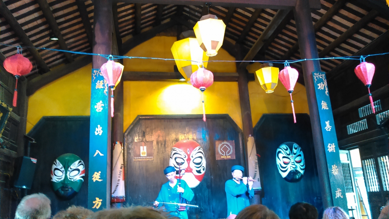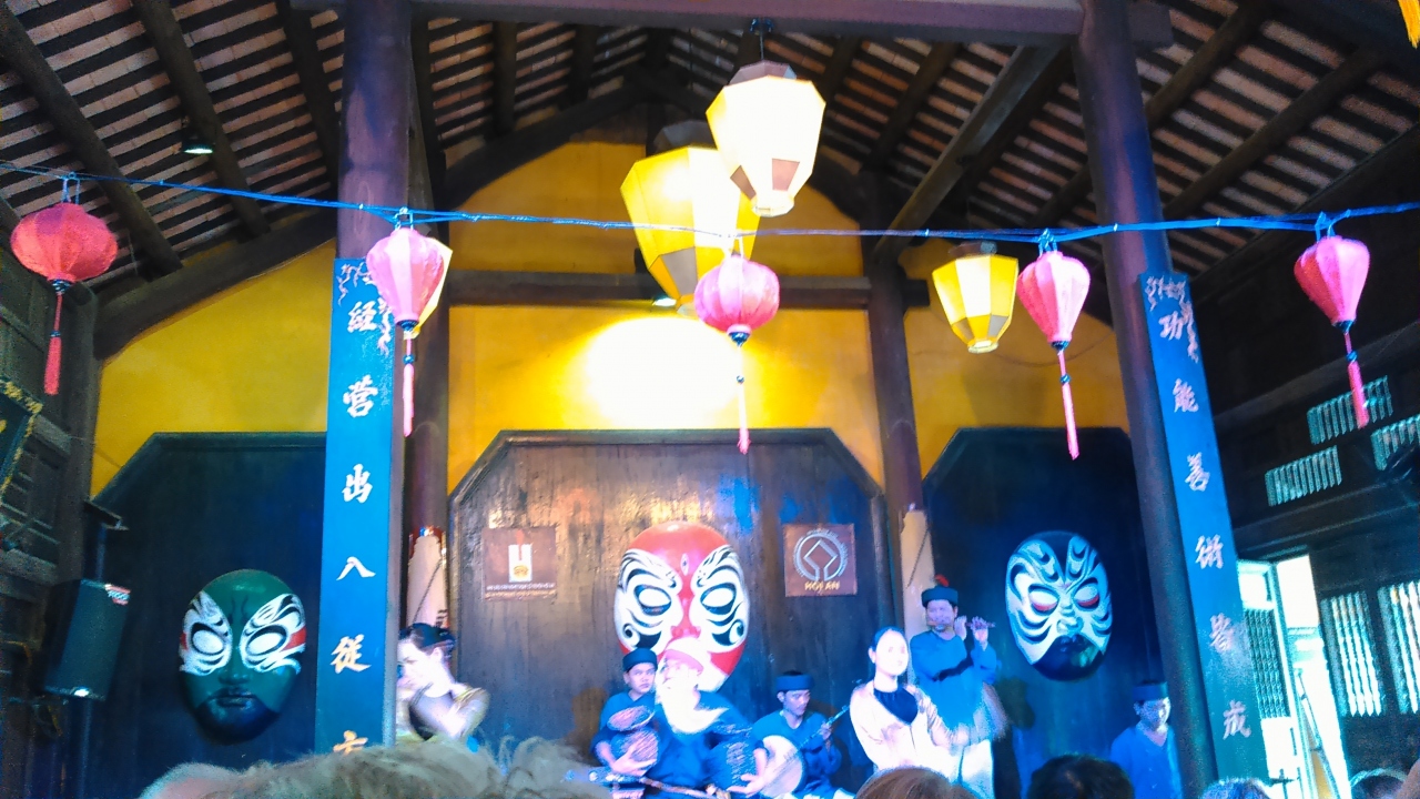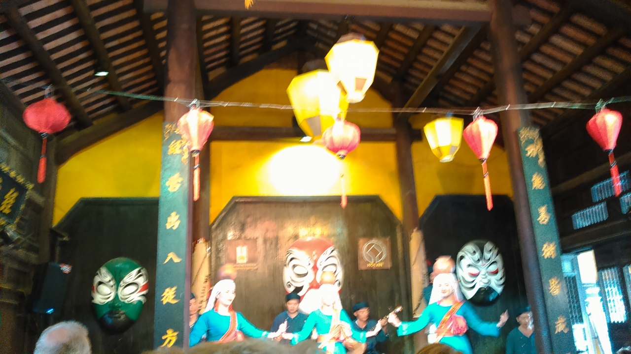 ツアーのフリータイムで訪問しました。地図を片手に場所が分からずに佇んでいると、そばにいたお巡りさんが、4軒先だよと教えてくれました。店の奥でランタン造りをしているのを見たり、お茶の試飲をして買い物したりし、開演を待ちました。1日2回25分のコンサートが行われます。楽器演奏や歌、踊りなどを楽しみました。