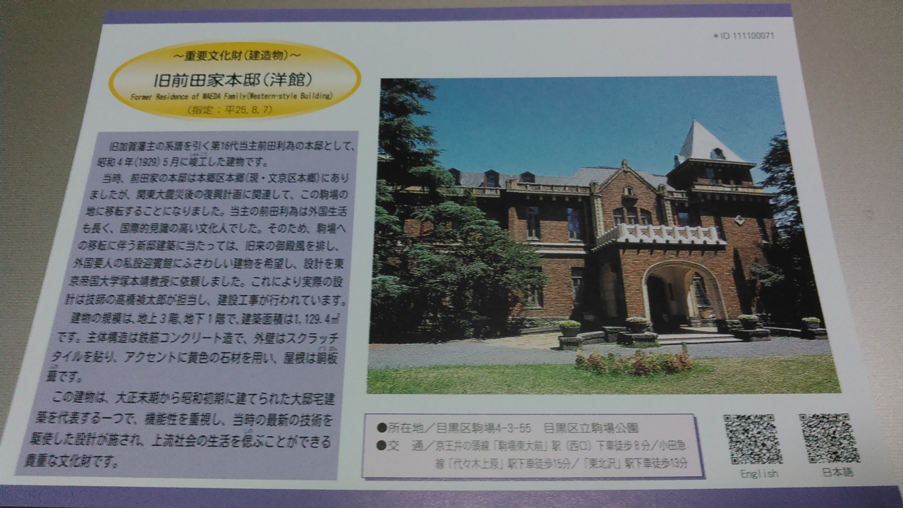 駒場に住んでいる方の案内で、東大周辺を散歩するついでに訪問しました。週2日しか開館しないようですが、たまたま開いていて、マザリナード展をしていていたので、見学しました。展示物ごとに付箋紙が貼られ、感想や意見を書き込んでいたのが、面白かったです。
