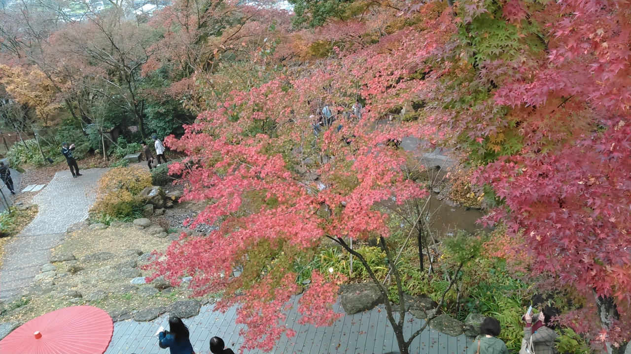 日帰りバスツアーで訪れました。紅葉の名所ですので、大変多くの観光客で賑わっていました。生憎の前夜の風雨で、メインの楓の紅葉した葉は、すっかり落ちてしまっていましたが、地面に落ちた様は、それはそれで風情がありました。階段を登り、仏様の前での、僧侶のお話には説得力がありました。