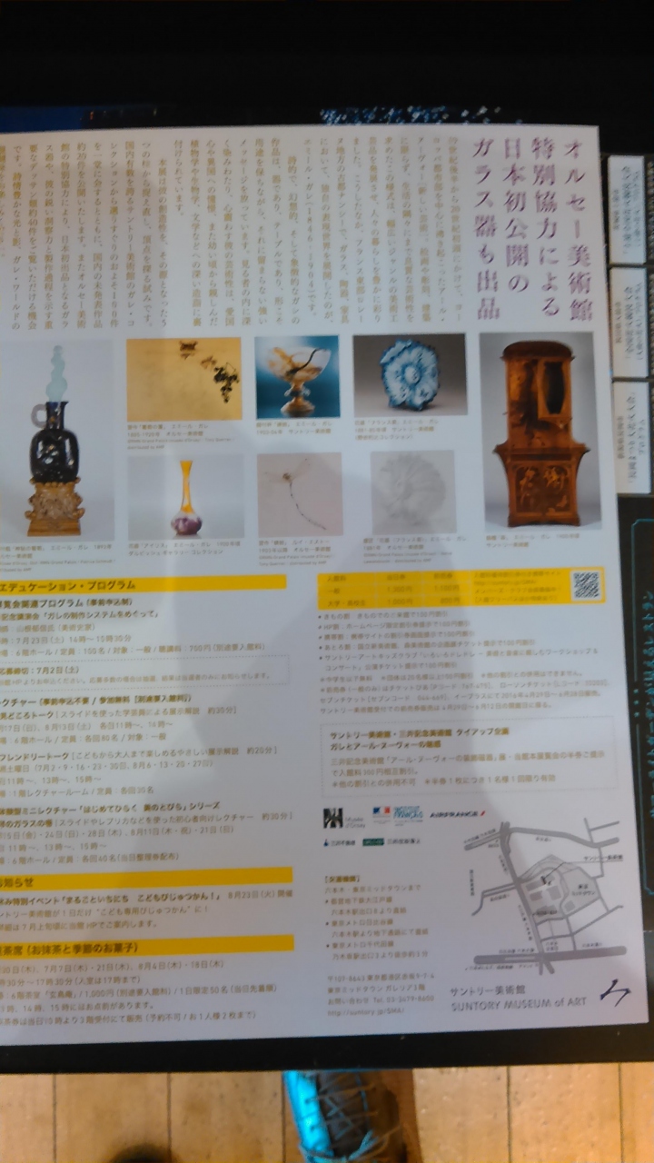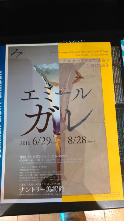 エミール・ガレ展に行きました。地下鉄の乃木坂駅から徒歩7分ほど、ミッドタウン内にあります。お店は開店前で、一番奥のエレベーターから3階まで登りました。開場10分前には、15人ほど待っていましたが、前売りチケットを持っていたので、すぐに入れました。ガレのデッサン画などもオルセー美術館の協力の元、展示されていました。都心の美術館というせいがあるのかとは思いますが、個人的には箱根ポーラ美術館などの方が、ゆったりとした造りで、精巧な作品が展示されているように思います。