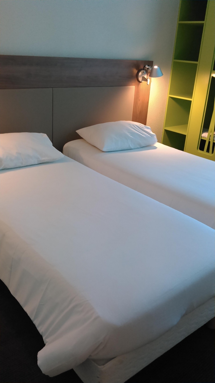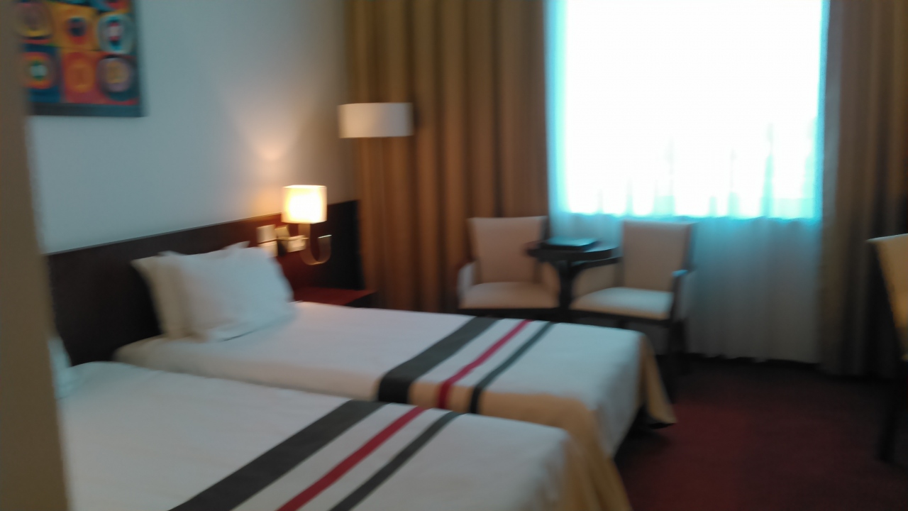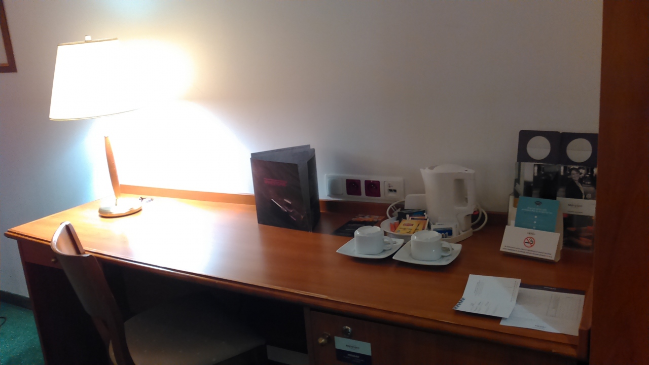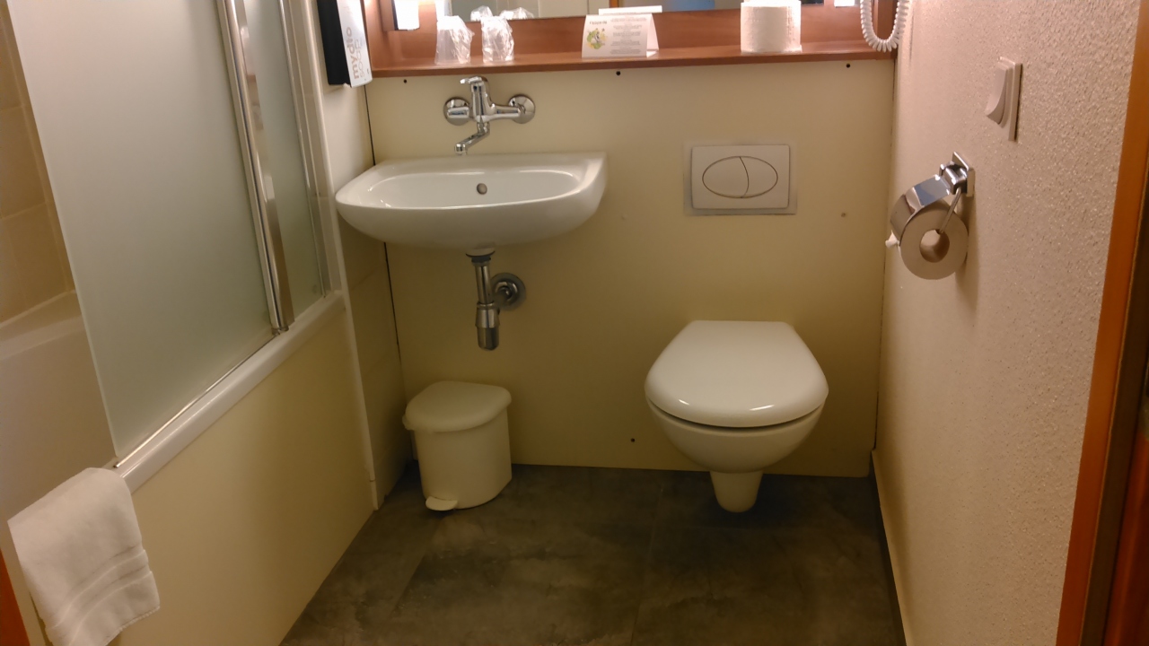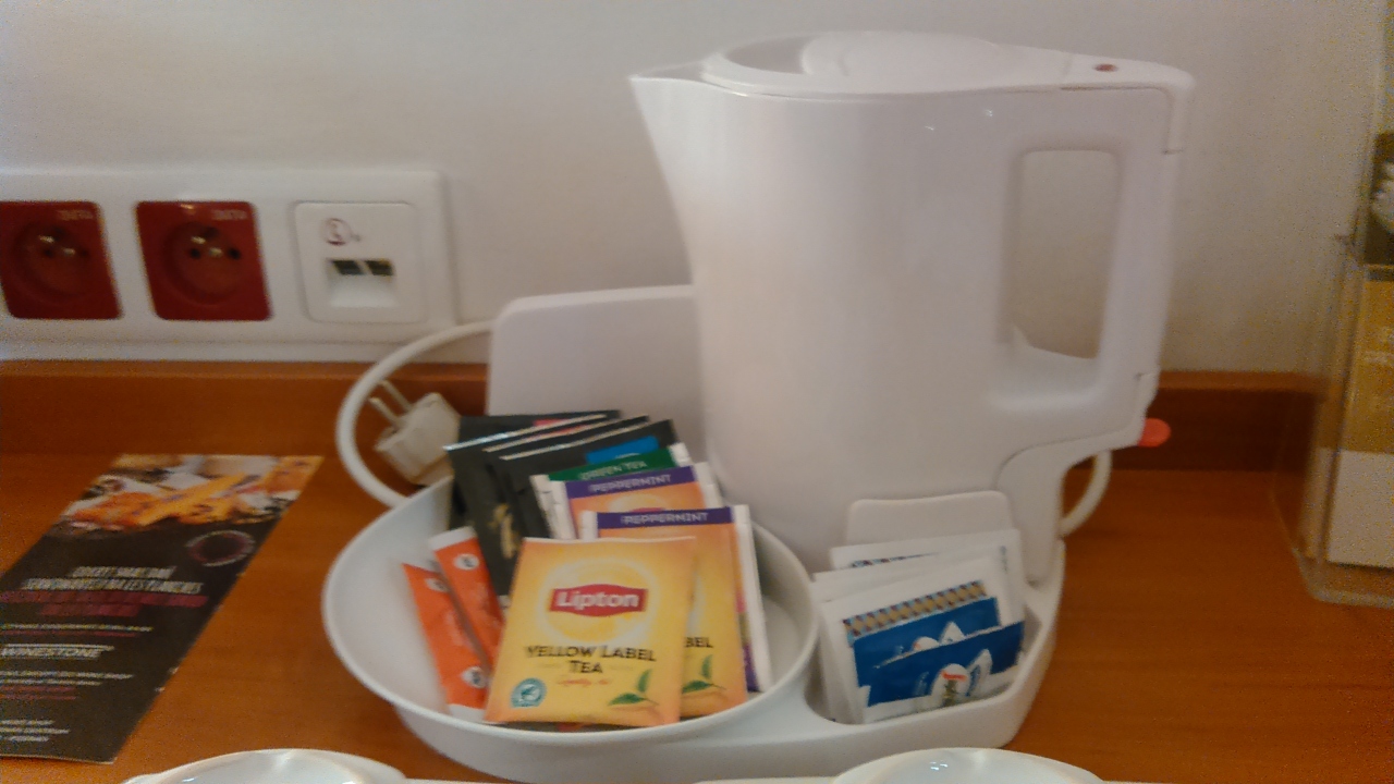 ツアーで1泊しました。一言で言えば、究極の2つ星エコホテル。部屋には、無料のお茶セット、電気ポット、水1本、机やバスタブはあります。が、ごみ箱、ティッシュなし、一人1枚のバスタオルのみ、フェイスタオルなし。夕食はハンバーグでしたが、肉が硬かったです。