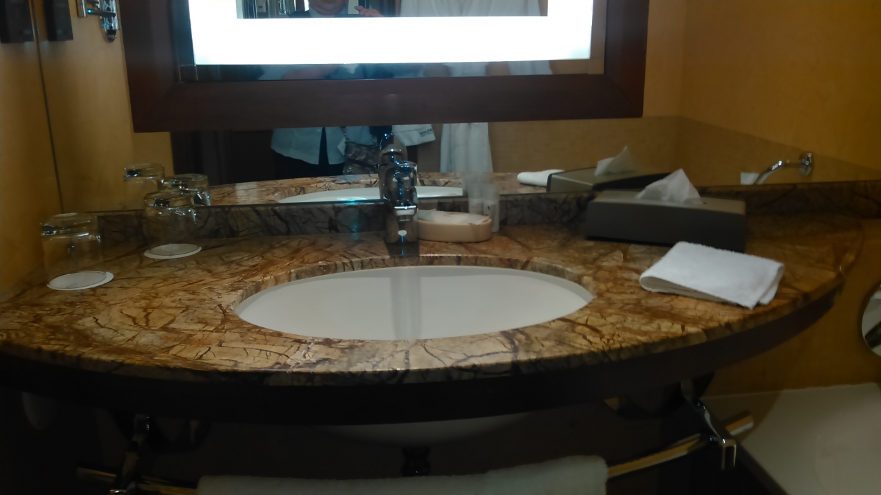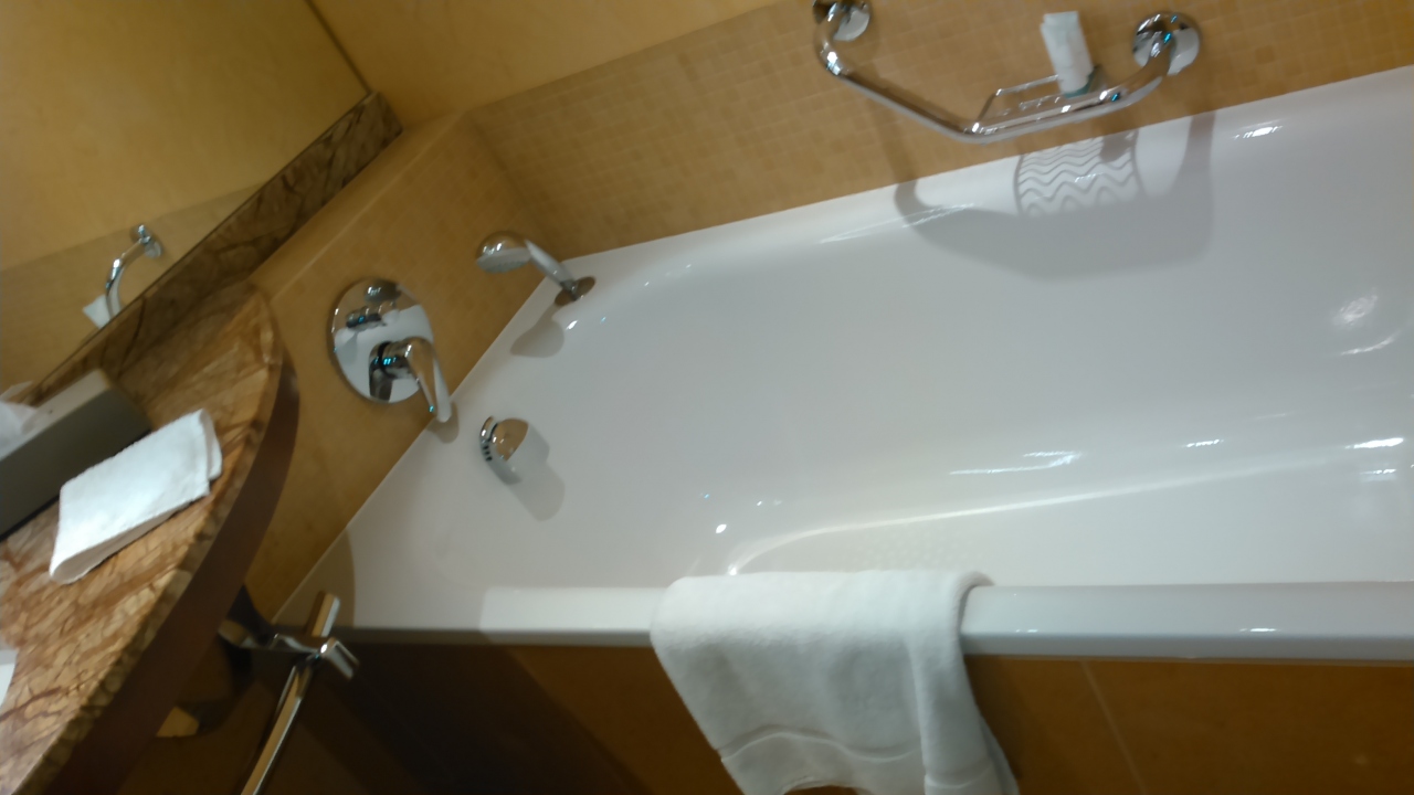 ツアー最終日に宿泊しました。さすが5ツ星デラックスホテルです。部屋は広く、水回りの使い勝手は良かったです。バスタオルが3枚、フェイスタオルも同数。シャワー室と別にバスタブにシャワーが付いてました。朝食もメニューが多く美味しかったです。