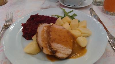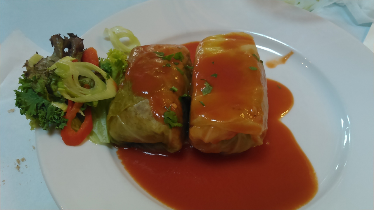 ツアーのランチで訪問しました。ヴィエリチカ岩塩坑のすぐ前なので、観光の前後に訪問するのに便利です。前菜はサラダ、メインはロールキャベツで、「肉肉感」というより柔らかくふっくらした感じがしました。美味しかったですが、量が多く残しました。