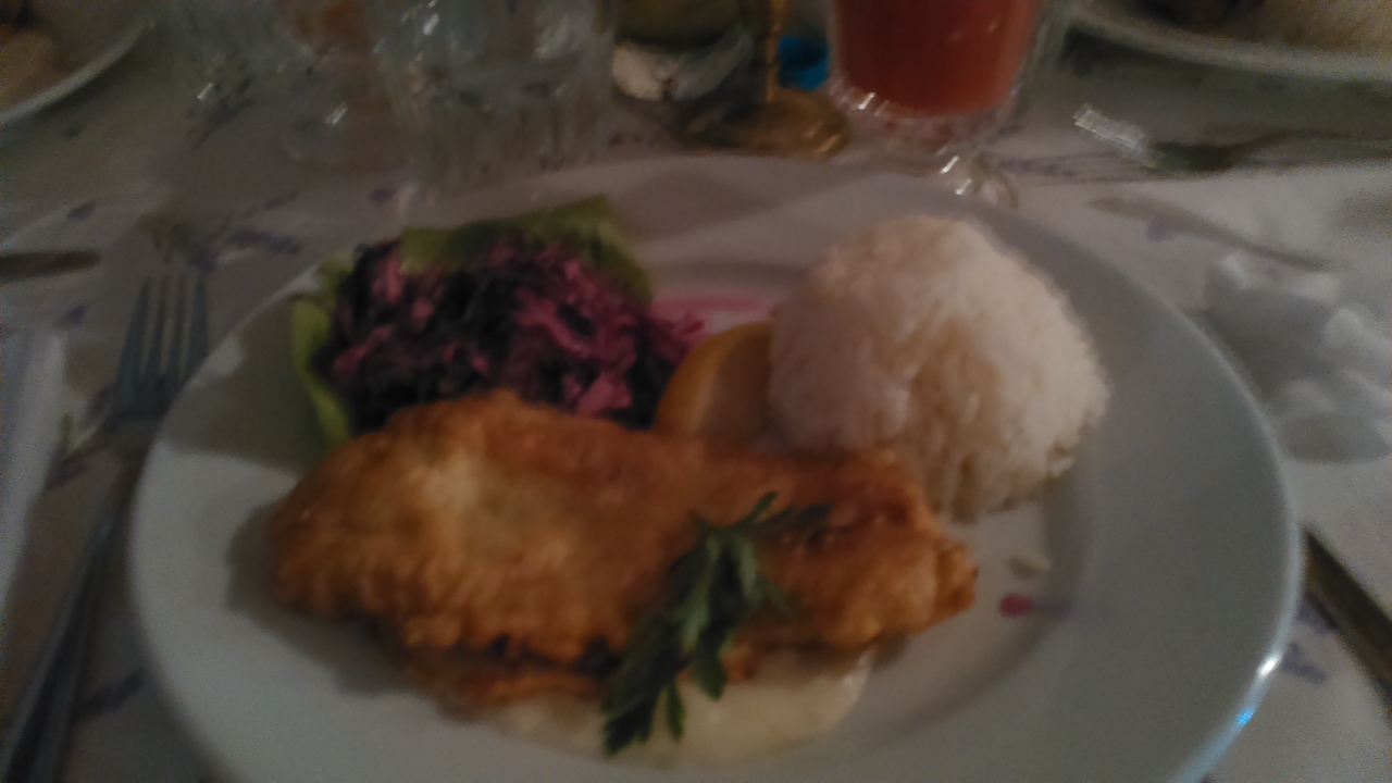 ツアーのランチで訪問しました。クラクフ歴史地区を観光した後、ワルシャワ中央駅に行く途中にあり、どちらにも行けます。前菜はスープ、メインは魚の揚げたものでした。ライスは付け合わせとして出ました。味はままあでした。