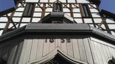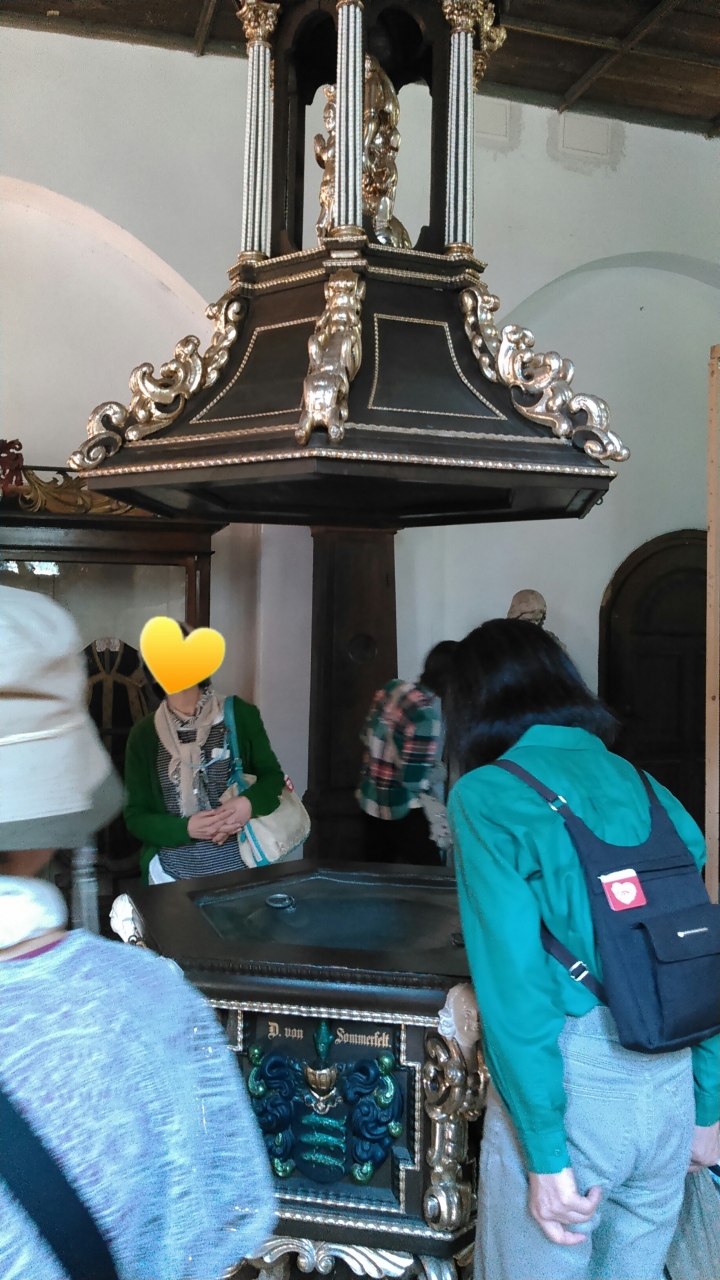ツアーで訪問しました。聖三位一体を示しており、1655年に完成しました。3500本ものオーク材が使われています。建築の際に「耐久性のない建材しか使用してはならない」「伝統的な教会建築様式を採用してはならない」などのさまざまな条件が課せられたため、すべて木造の建物になったそうです。