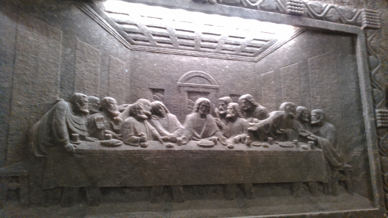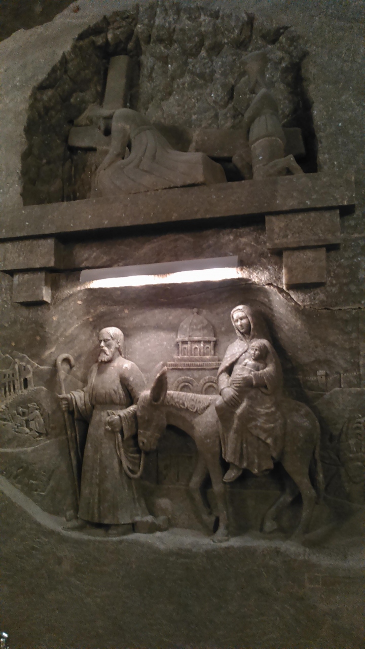 ツアーで訪問しました。13世紀中頃から1990年代まで採鉱が続いた岩塩採掘場です。最深部が327m、行動の総延長は約300km!歩くのはその一部2.5km。2時間半。人形が採掘していたり、岩塩の彫刻を展示してあったりします。