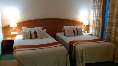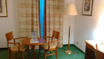 ツアー2日目に宿泊しました。部屋は広く水回りの使い勝手は良かったです。無料のお茶セットと、ミネラルウォーターは2本、ガスありとガスなしが1本ずつ。夕食・朝食とも美味しかったです。特に夕食のパスタソースの味が気に入りました。