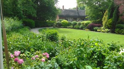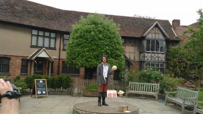ツアーの自由時間に訪問しました。入場料はシニアで16.5ポンドと高価でした。シェイクスピアセンターから入場しました。裕福な商家らしい広々とした造りで、内装は可能な限りオリジナルが残されており、家具や食べ物などが再現されていました。お庭にはバラなどの花が咲いており綺麗で、ハムレットの一節を演じてくれる俳優もいました。