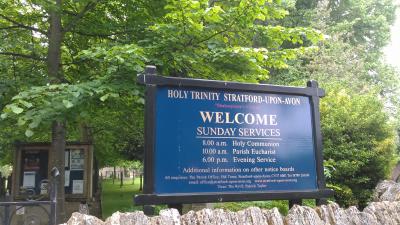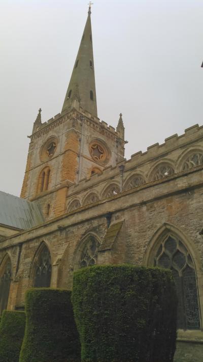 ツアーで訪問しましたが、日曜日でミサが行われており、中には入れませんでした。シェイクスピアがここで洗礼を受け、ここで埋葬されているというのにとても残念でした。お墓は内部にあるそうで、教会の北側には彼の彫像があるそです。鋭い尖塔が美しかったです。