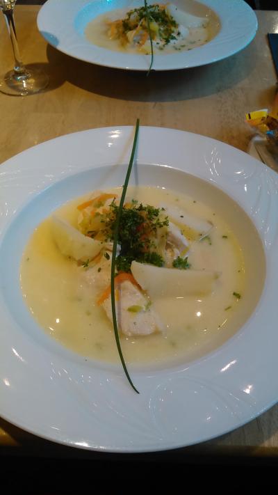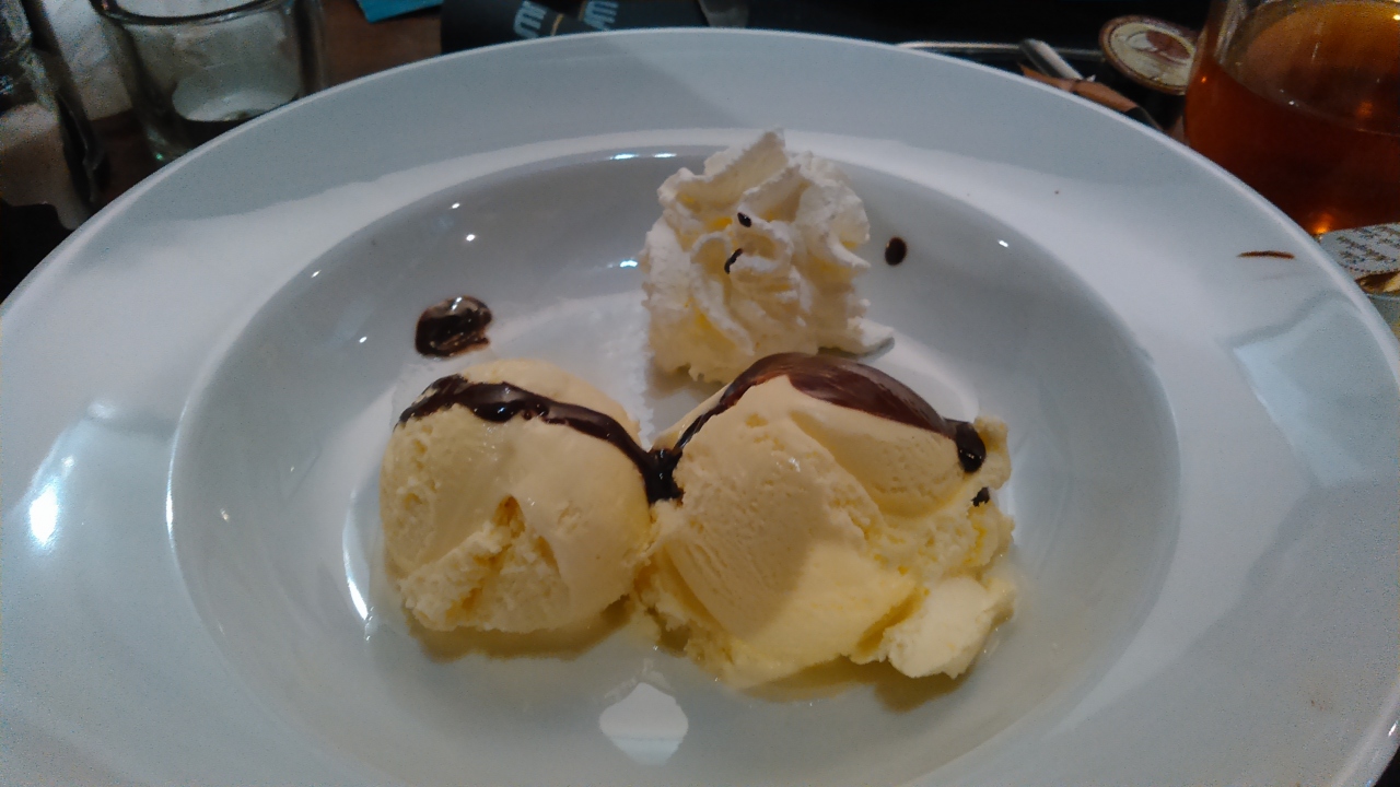 ツアーでランチに利用しました。まずはほうれん草?のスープ、香草も入り、量が多かったです。味は普通。次にシコン(チコリ)のグラタン。チコリはサラダに入っている程度なら大丈夫ですが、あの苦い野菜を丸1本は大きすぎ、残しました。ホワイトソースは美味しかったです。デザートはアイスが2個。これも多すぎ残しました。