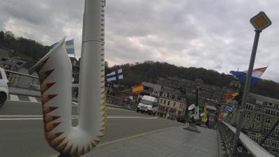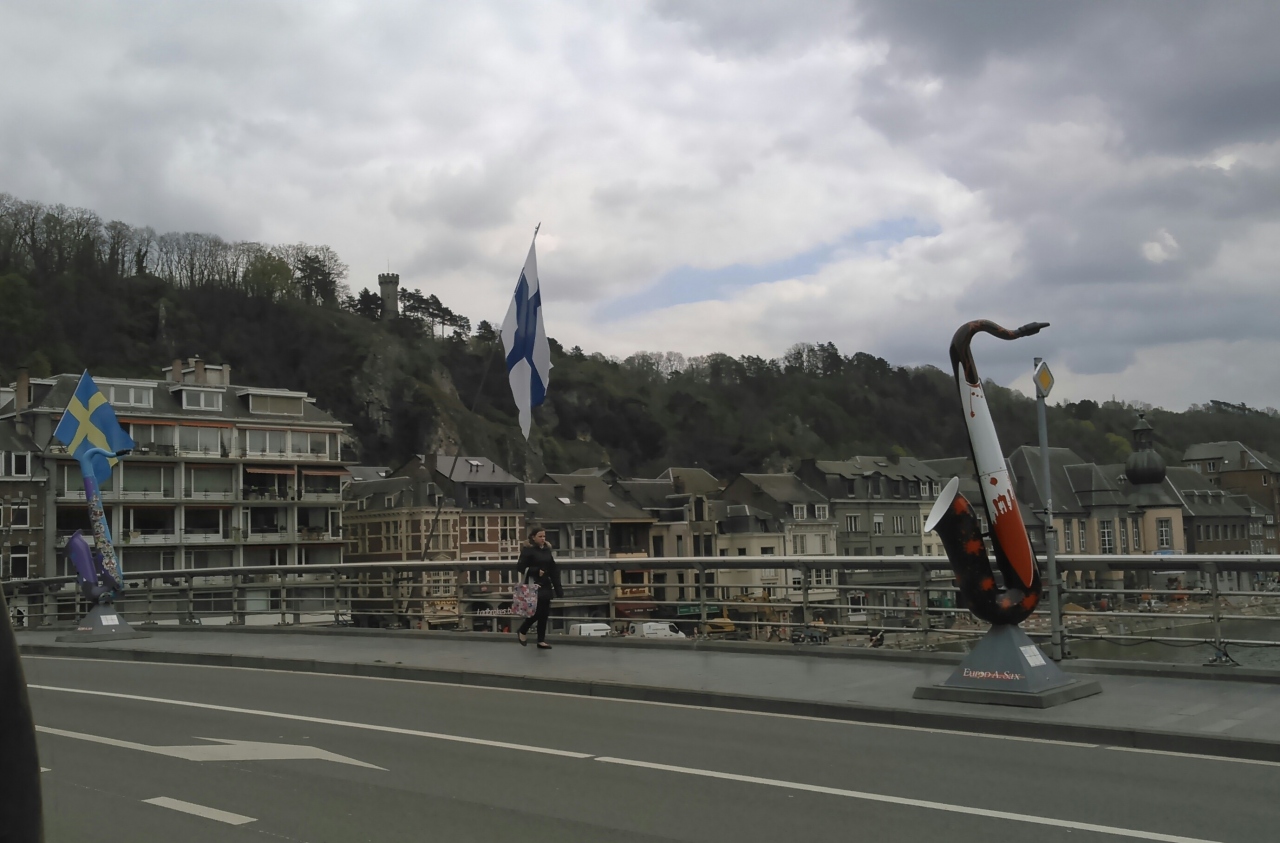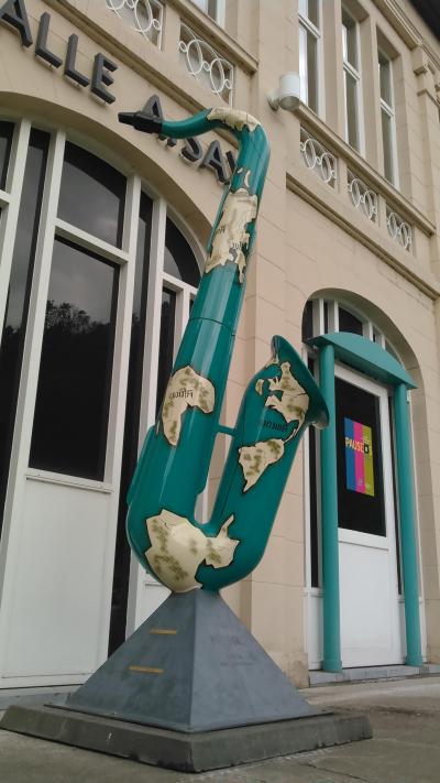 ツアーで訪問しました。サックスが生まれた街ということで、町のあちこちにサックスの模型やら、像やら、街灯もサックスでした。橋の欄干にもサックスがあり、それぞれとてもカラフルな色に塗ってありました。公民館の前のサックスも地球儀のようなイメージでした。