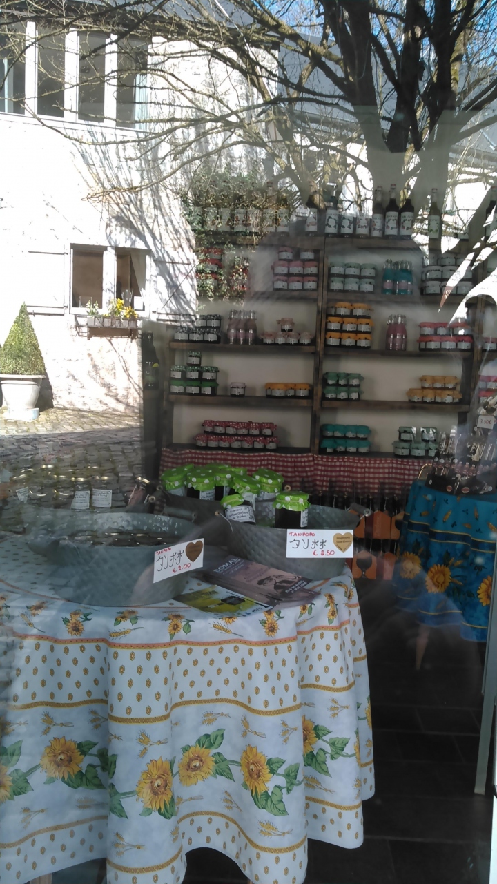 ツアーで訪問しました。ディナンの街での名物菓子「クック・ド・ディナン」を作って売っているお店です。蜂蜜と小麦粉だけで作っている、とても硬いお菓子で日持ちします。トイレだけ借りると50セント、商品を買うとトイレは無料ということで、ツアー客は皆商品を買い、トイレを借りました。