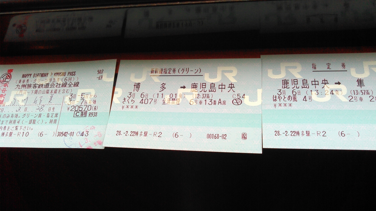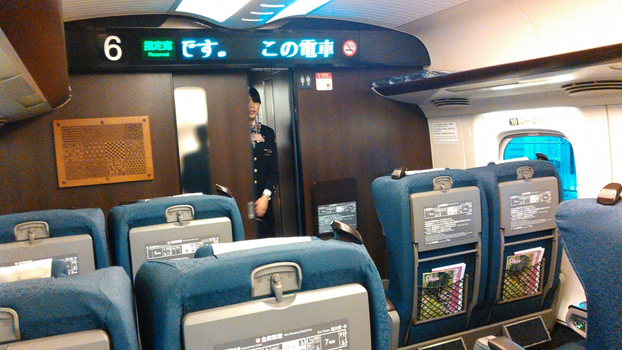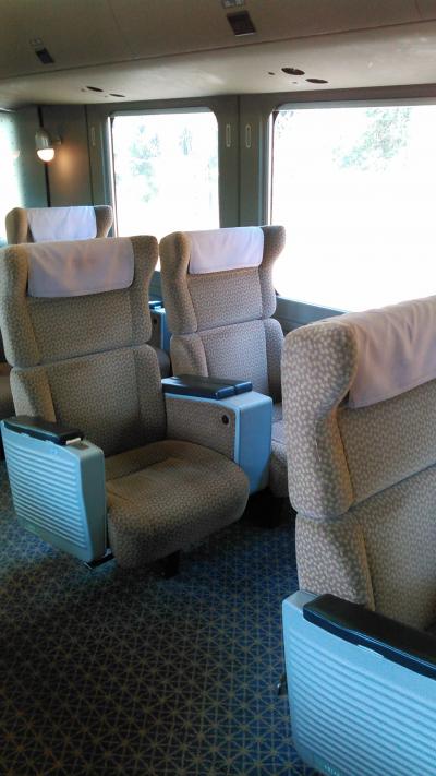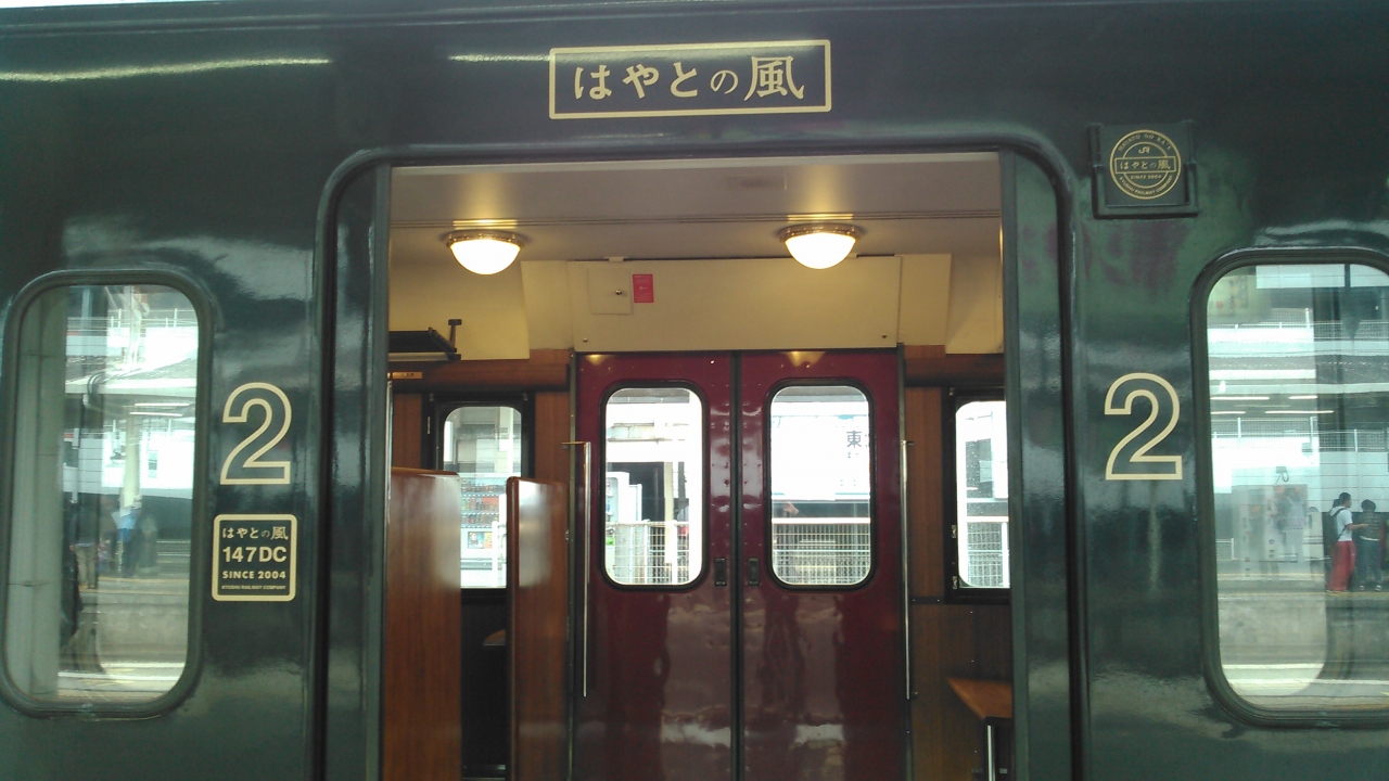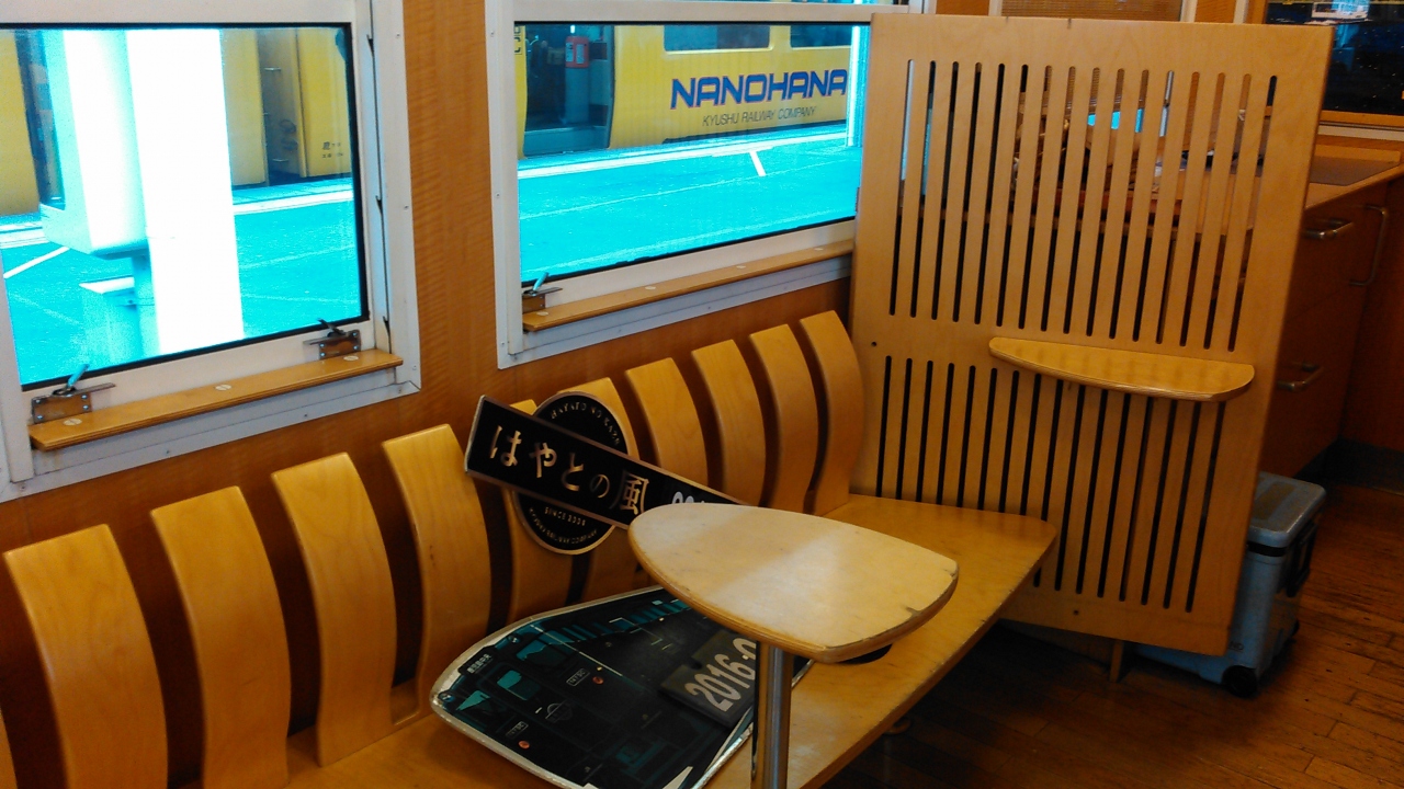 博多駅から鹿児島中央駅への往復で、グリーン車を利用しました。所要時間は1時間半!速い!乗客は少なく、静かで、座席はゆったりとしているし、足置きもついていて、リクライニングが付き、快適でした。乗ってすぐ、おしぼりと飴が配られました。