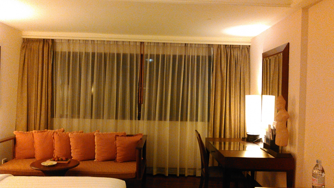 ツアーで初日に1泊しました。アジアのホテルなので、さほど期待はしていませんでしたが、さすが元フランス領というだけあって、施設は整っていました。部屋にはヘヤードライヤー、湯沸しポット、wifi、スリッパ、冷蔵庫、無料のコーヒー・紅茶セットがありました。