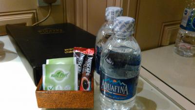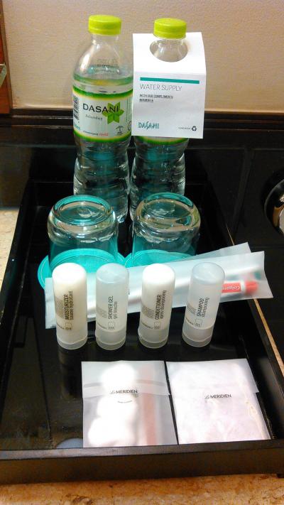 ツアーで1泊しました。建物の造りは古さも感じますが、快適に過ごせました。ヘヤードライヤー、湯沸しポット、wifi、冷蔵庫もあり、中身のビール1缶、コーラ2缶、ジュース1本、ペットボトル水2本が無料でした。