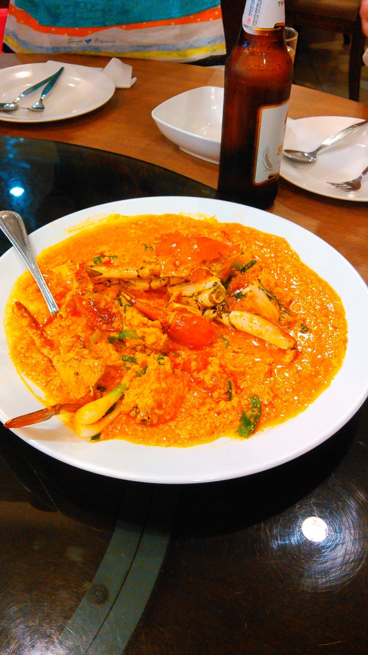 ツアーで訪問しました。店の前にはカニ、カニ、カニ。大きなプラスチックの籠に何百匹、何千匹も。店の中も大混雑。皆さんがこの店の名物、カニカレーを食べるのでこれだけ多くのカニが必要だそうです。タイ料理は辛いので、苦手だなあと思って参加しました。が、カニカレーは、卵がふんわりと甘く、美味しかったです。他のもどれも美味しかったです。