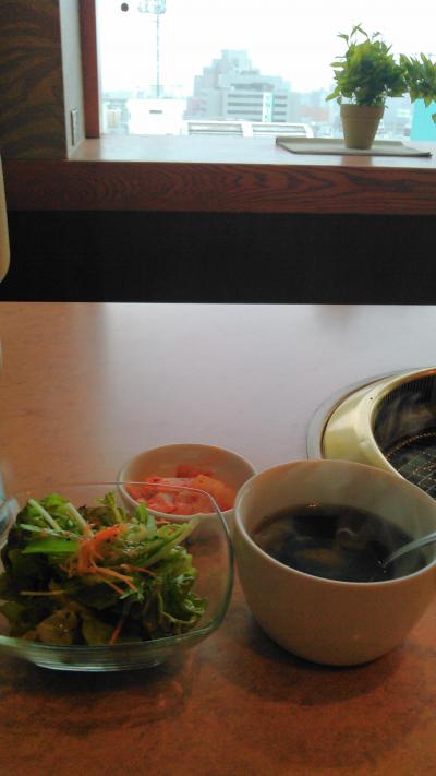 天神のイムズの13階にあります。普通のエレベーターの奥に業務用の大きいものがあり、ランチタイムには利用できます。女性にお勧めはカルビランチ。1.5倍のカルビと、ごはんとスープ、キムチ、サラダが付いています。たくさん食べたい方には食べ放題もあります。椅子席と、掘りごたつ式の座敷席があります。