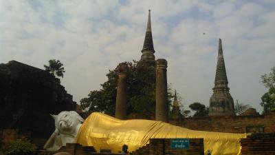 ツアーで訪問しました。アユタヤには数え切れないほどの遺跡があるそうですが、観光客が行くとすればまずここ。アユタヤで2番目に高い72mの仏塔があります。スリランカ様式です。屋外に横たわる巨大な涅槃像や黄金の釈迦仏などもあります。