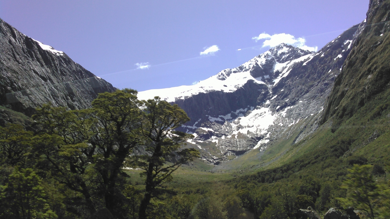 クイーンズタウンからバスで6時間、往復だとその2倍ですが、それでも見る価値はあると思いました。急ぎたい人は、帰りは飛行機で戻るという手もあります。高いですが。途中何か所か写真撮影したり、景色を見たりして行きました。氷河で削られた岩山は、生まれて初めて見る素晴らしい景色でした。