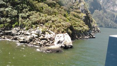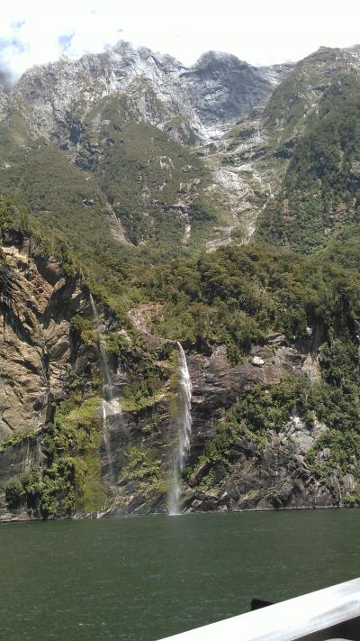 バスで6時間揺られた後のクルーズでした。15000年前に氷河の浸食で深いU字型の谷が形成され、温暖期に溶け、海水が流れ込みサウンド(入り江)が生まれたそうです。1000mを超す山々、オットセイ、イルカ。見どころ満載でした。