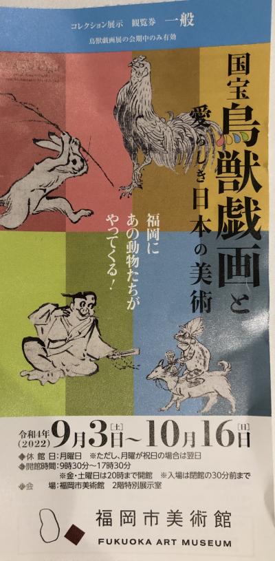 博多バスターミナルからバスで約20分、赤坂3丁目で下車して徒歩10分。帰りはNHKまで徒歩5分で乗車。最終日の日曜なので、ネットで鑑賞時刻を予約し、クレジットカード払いで、1800円。1階のカフェアクアムでランチして、少し早めに入りました。受付で並ばずに、入れました。肝心の作品の前には、90人ほどが3列に並んでいて、しばらく待ち、最前列になってから、ゆっくり動きながら鑑賞しました。作品は可愛かったです。ショップも混んでいました。
