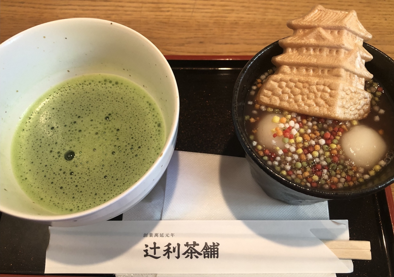 久しぶりにあんこが食べたくて訪問しました。ぜんざいには、インスタ映えしそうな、小倉城の最中と、カラフルなあられが乗っていて、お抹茶とのセットで720円に値上げしてました。以前は栗の甘露煮と、カラフルなもちが入っていました。私はそちらの方が好きです。