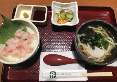 従妹とディナーに来ました。小倉駅直結で、便利。メニューが多少変わりましたが、栄養バランスの良い食事ができます。お腹があまり空いていなかったので、今回は目新しく、軽いものにしました。甘えびの小丼とうどんのセット。ドリンクバーをつけ、おいしく、楽しいひとときをすごしました。